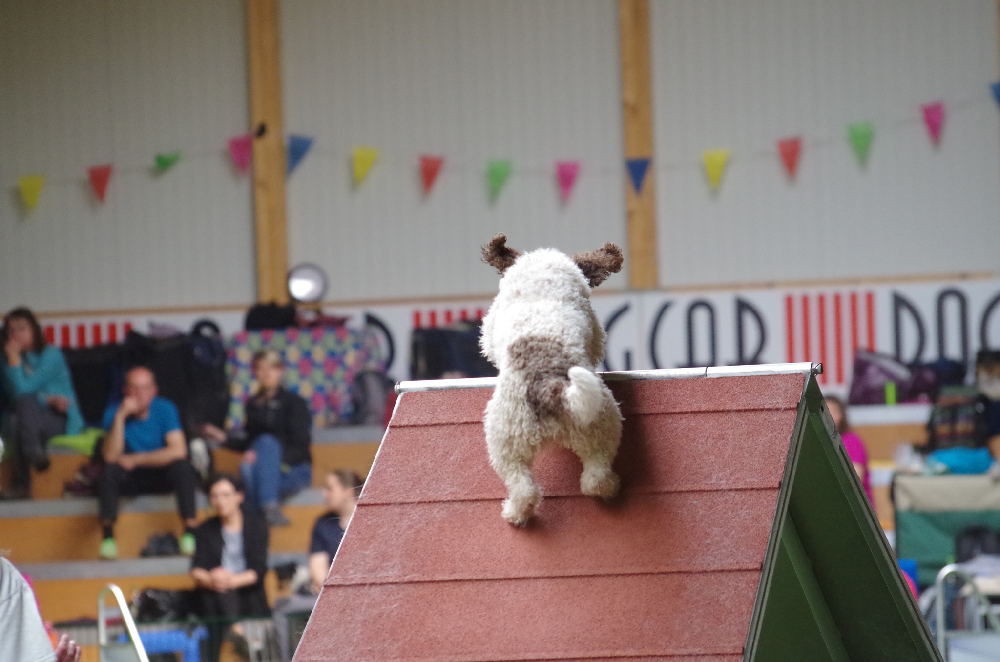 Emi startet bei ihrem ersten Turnier gleich voll durch und ist direkt in die A1 aufgestiegen. Unser kleiner Large-Hund war sehr dynamisch, sang lauter als die Fischer-Chöre und flog wie eine Große über die Hürden. So kamen wir mit einer Verweigerung auf dem 2. Platz ins Ziel. Brave, tollste, beste Emi der Welt. Das Training, das seit Anfang April wieder halbwegs regelmäßig läuft, trägt langsam Früchte.