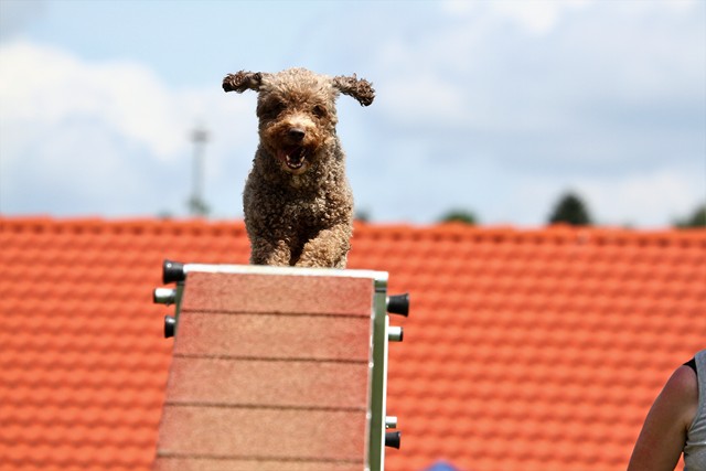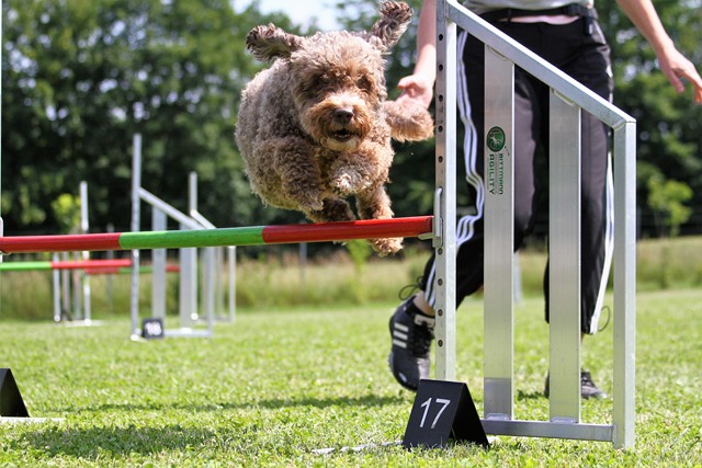 Es bleibt bei dem Versuch, denn so richtig geklappt hat nichts beim Training der Holzheimer Sporthunde mit Dieter Heinrich. Auch ein Intensiv-Training schützt nicht davor, dass Bonnie, völlig durchgeknallt, am Slalom vorbeiballert, sich wegkläfft und einfach mal einen Tunnel nimmt. Lustig finden wir das nicht, ihr hat es jedenfalls ganz offensichtlich Spaß gemacht.