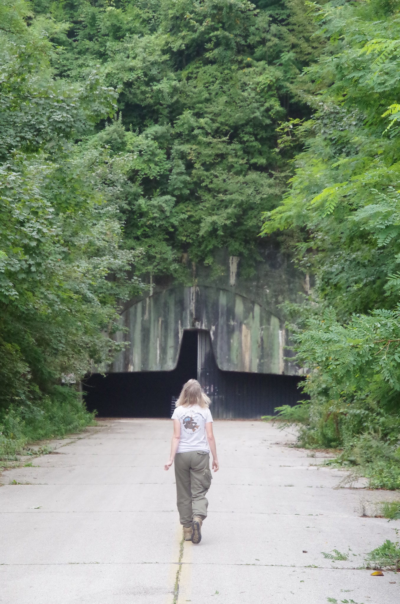 Wir fahren über die Start- und Landebahn der heute verlassenen militärischen Flugzeugkaverne Željana an der bosnisch-kroatischen Grenze bei Bihać. Mit dem Rückzug der Jugoslawischen Armee aus Bosnien 1991 wurde die Anlage stillgelegt, der Zustand ist seit Kriegsende unverändert. Es liegen dort noch Minen, aber man muss die Wege ja nicht verlassen.