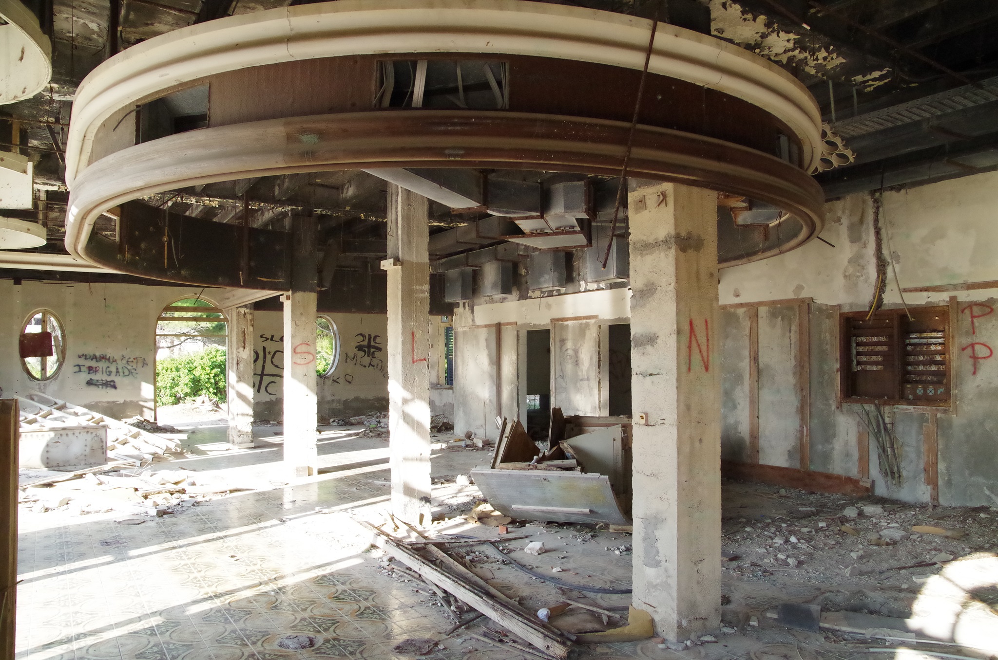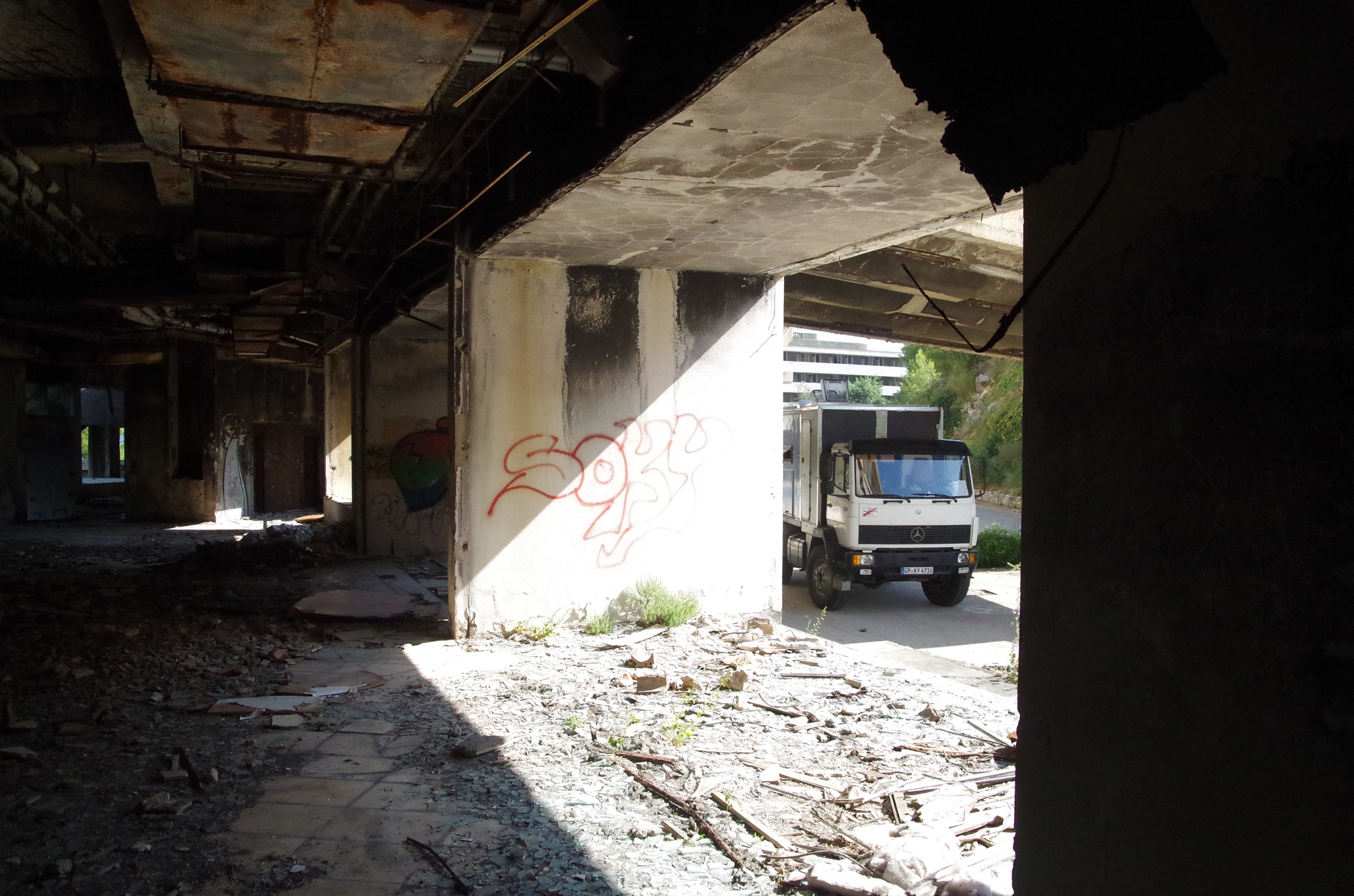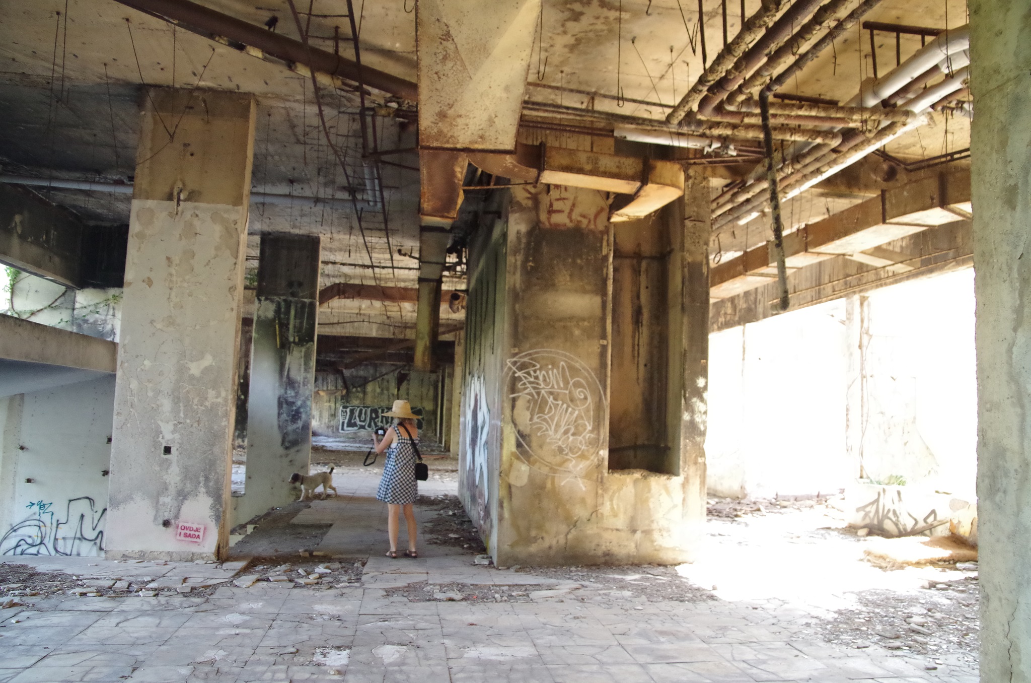 Wir fahren entlang der Küste über Dubrovnik nach Albanien. Dubrovnik hat sich mittlerweile zu einem Touristenzentrum entwickelt. Offiziell leben noch 1.500 Einwohner in der Stadt. Südlich von Dubrovnik liegt eine riesige zerfallene Hotelanlage und einer der schönsten Strände Kroatiens (daher wurden hier auch Hotels gebaut). Man kann nur erahnen, wie luxuriös und schön die Nobelhotels einst waren. Die Führungselite der Jugoslawischen Armee hat dort Urlaub gemacht. Selbst Tito hatte dort eine Villa. Die Hotels besitzen bis zu 600 Zimmer. Das erste Hotel wurde 1919 gebaut. 1984 wurde das letzte eröffnet, bis zum Stillstand im Jahr 1991 im Jugoslawienkrieg, das durch serbische Truppen zerstört wurde. Seither ist es leer. Metall wurde zur Rüstungsindustrie aus den Gebäuden geholt.