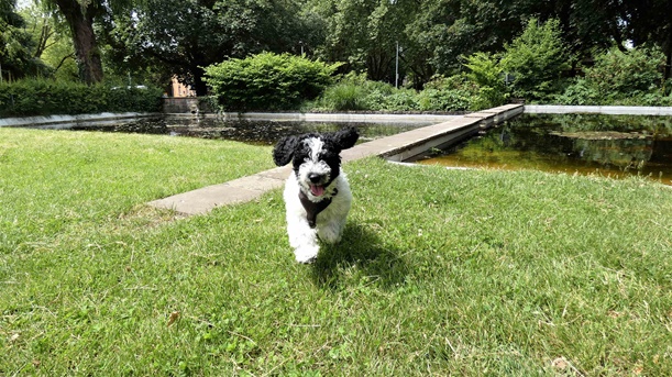 In sich ruhend macht Goya vieles mit einer Selbstverständlichkeit, die uns vergessen lässt, dass sie gerade mal 13 Wochen alt ist. Sie wackelt sich durch unseren Alltag, läuft vorbildlich mit und ohne Leine.