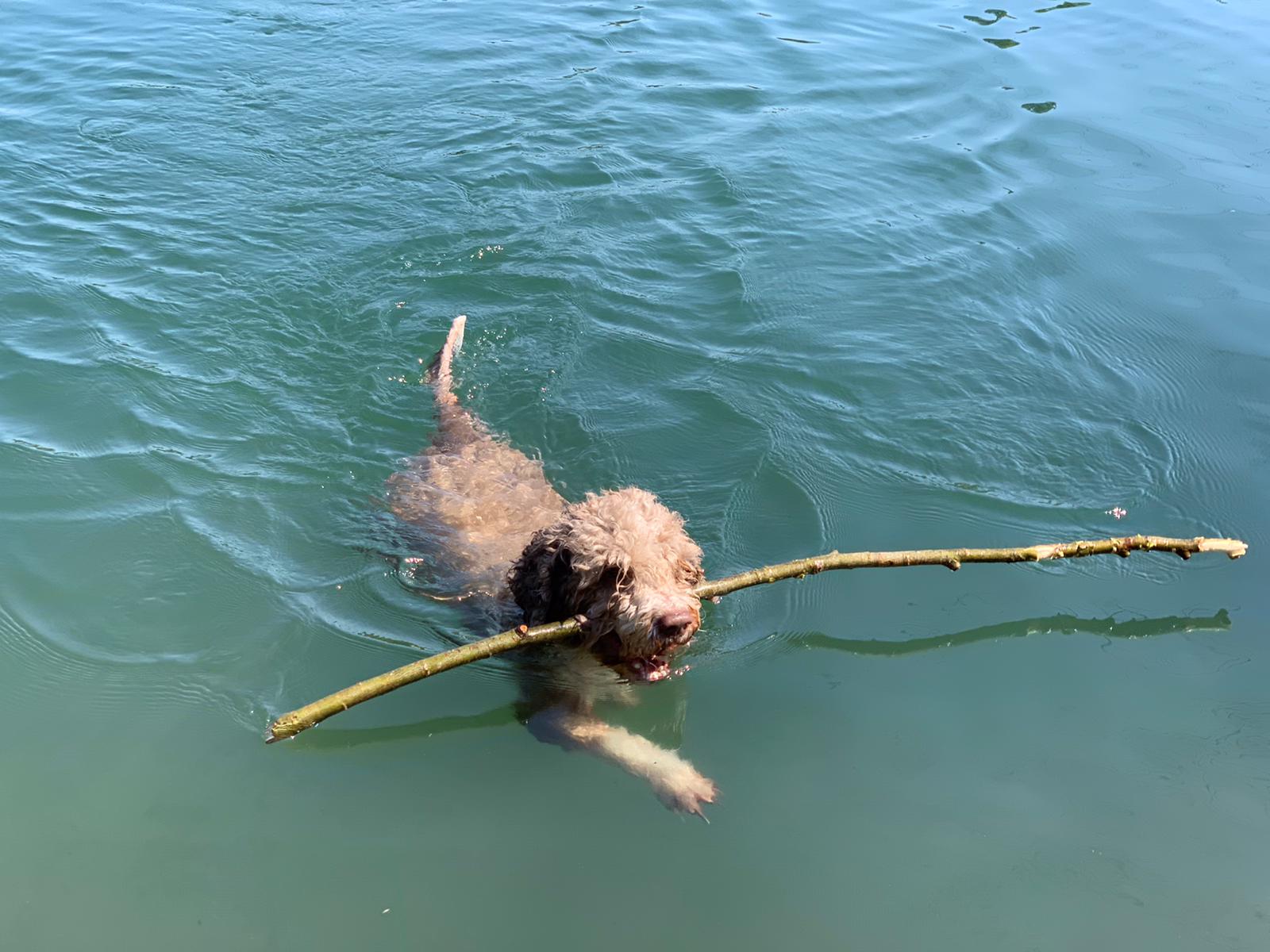 Dajla (Teddi) ist knapp 6 Jahre alt. Auch Teddi ist eine Wasserratte. Schmusebacke drinnen und Wirbelwind draußen - typisch Perro halt.