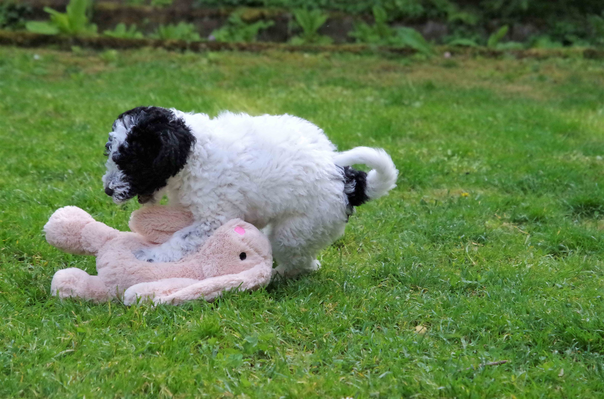 Unsere kleine Fressraupe ist neugierig, verfressen (sie legt ordentlich zu, die Kleine wiegt mit 9 Wochen schon 5 Kilo) und ein sehr angenehmer Welpe. Ein toller Charakter, tiefenentspannt und in sich ruhend, aber trotzdem mit Power. Sie macht es einem sehr einfach.