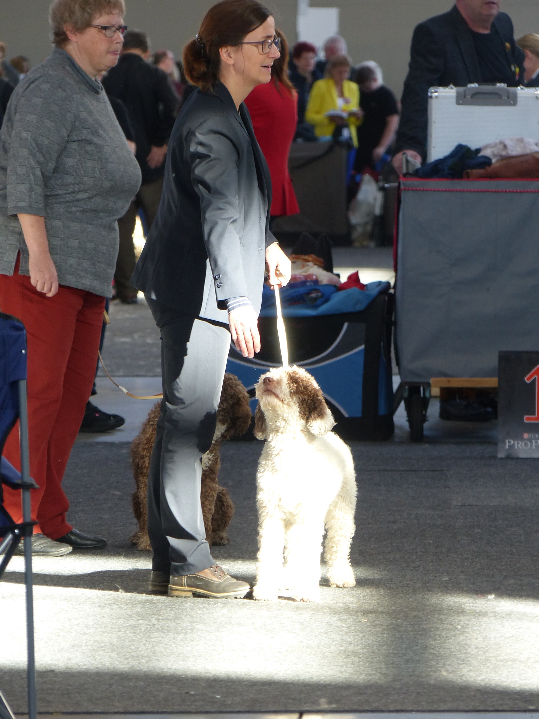 Es ging gut los, 17 Perro de Aguas standen unter Richter Tamás Jakkel (HU) am Start. In der Zwischenklasse waren dann drei Damen, dort gab es zwei SG und ein V. Elli (Eljana) bekam das SG2. Ihr fehlte heute das Quentchen Glück und sie bekam diesmal kein V.