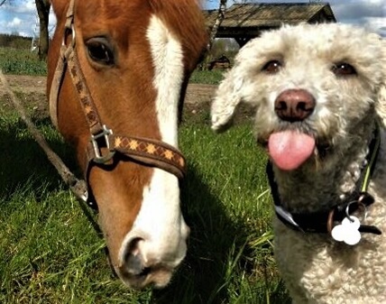 Sie begleitet Frauchen und ihren großen Freund gerne bei Ausritten und auf Wandertouren mit ihrer Familie durch Österreichs Berge.