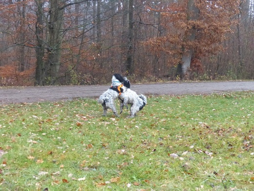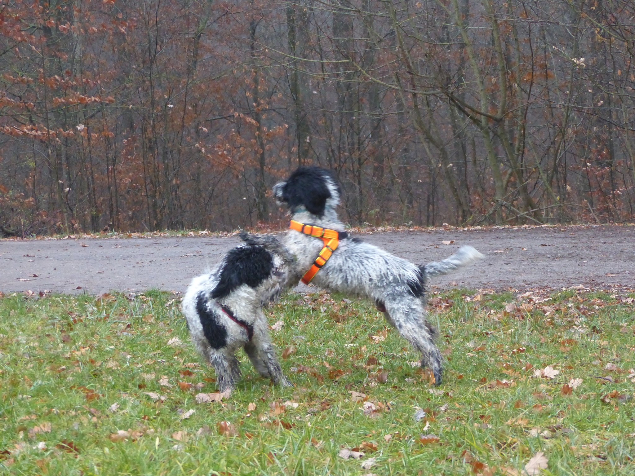 Nachdem der Schneefall für den Sonntag ausgesetzt hatte, starteten wir früh am Morgen mit Kurs auf Rutesheim, um dort die zwei Jungs zu treffen und gemeinsam eine Runde zu laufen. Die Hunde hatten viel Spaß und haben das Toben genossen.