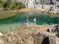 Die Wanderung beginnt am Stausee Vadiello inmitten der berühmten Canyonlandschaft der Sierra de Guara. Ein Naturschwimmbad inmitten einer Felsarena. Ein Traumziel für Wanderer. Eine Halbtagestour zu den schönsten Kaskadenrutschen Spaniens. Ein bischen wandern, ein bischen baden und die Schlucht bestaunen. Schwimmen, rutschen, springen, tauchen geht alles auch ohne Ausrüstung. Von Pool zu Pool auf bis zu zwölf Meter langen Naturbecken.