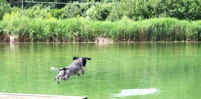 Hier sieht man Goya, die am gestrigen Feiertag offensichtlich Spaß hatte und das nass mit diversen Showeinlagen genießt.