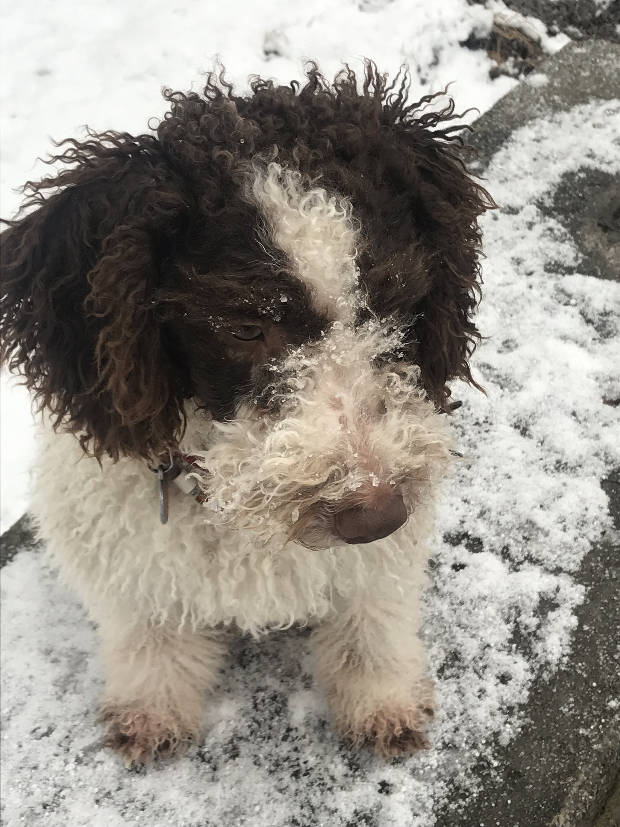 Solana geht es hervorragend, sie versucht sich im Mantrailing, zeigt Talent und Spaß und ist mit Eifer bei der Sache.