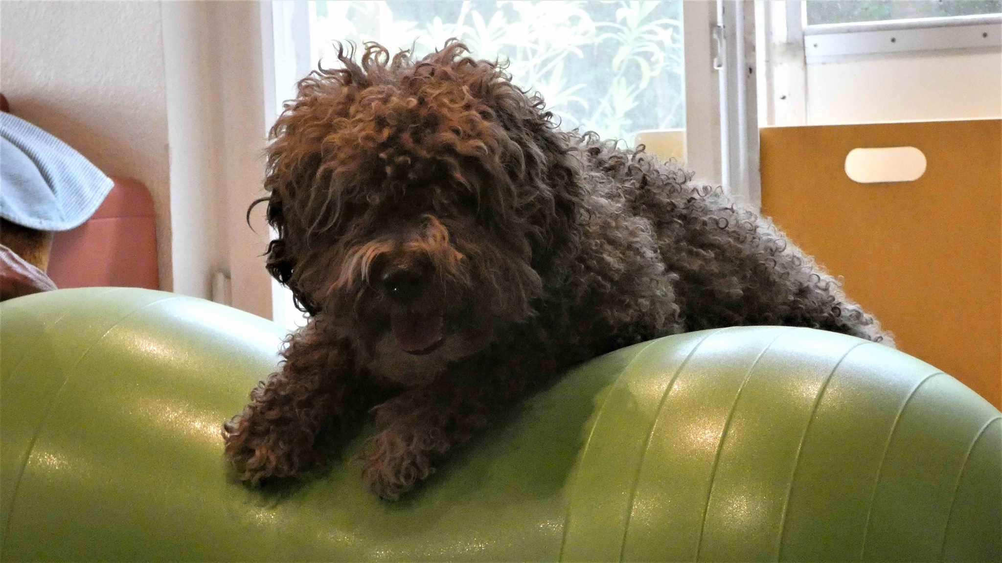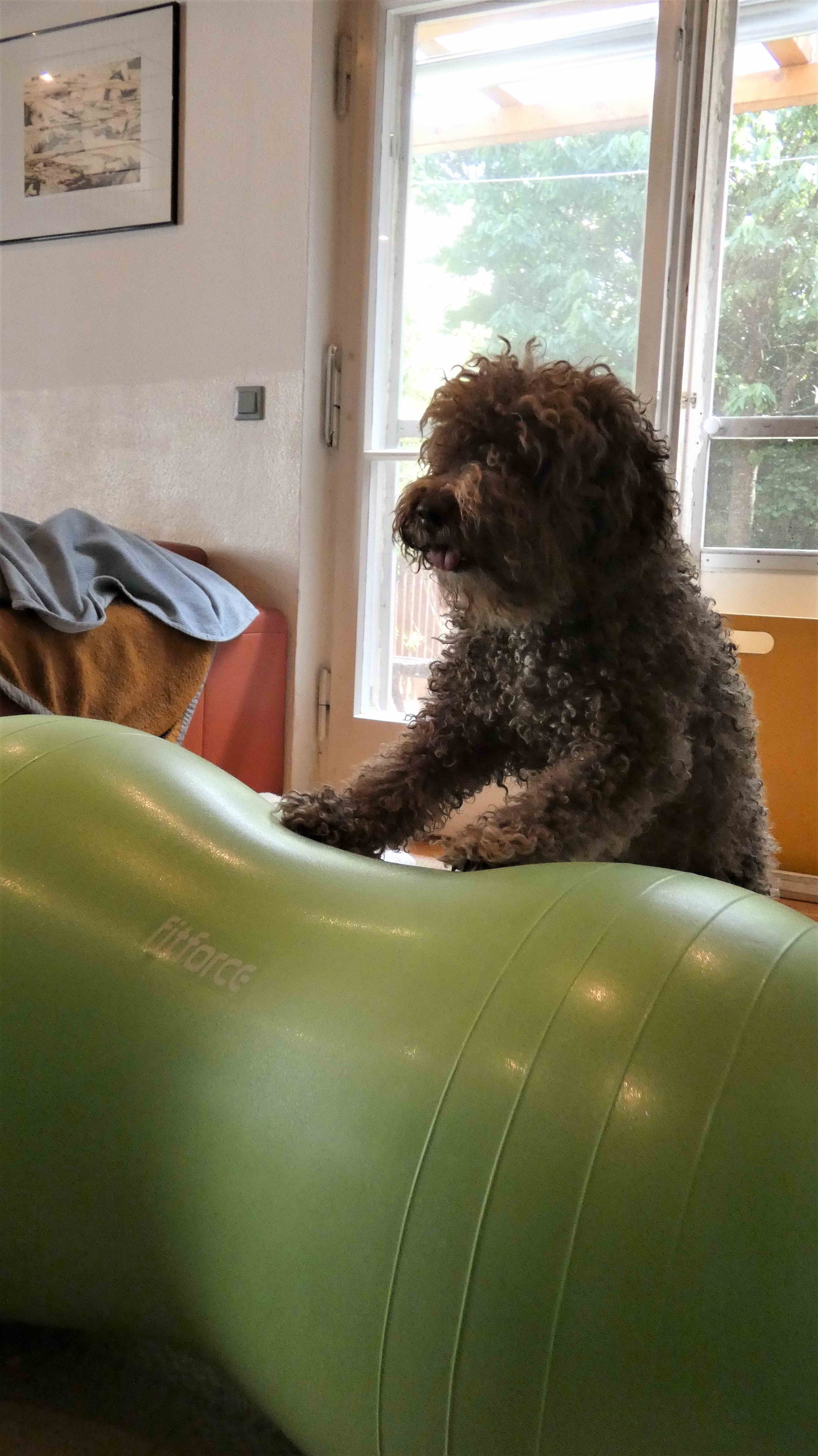 So machen wir Hundeturnen. Schon mit einigen Übungen kann man die Beweglichkeit verbessern und so bleibt sie länger körperlich und geistig fit. Der Alterungsprozess wird im Gehirn gesteuert und wer sich jünger fühlt, der altert weniger schnell :o)