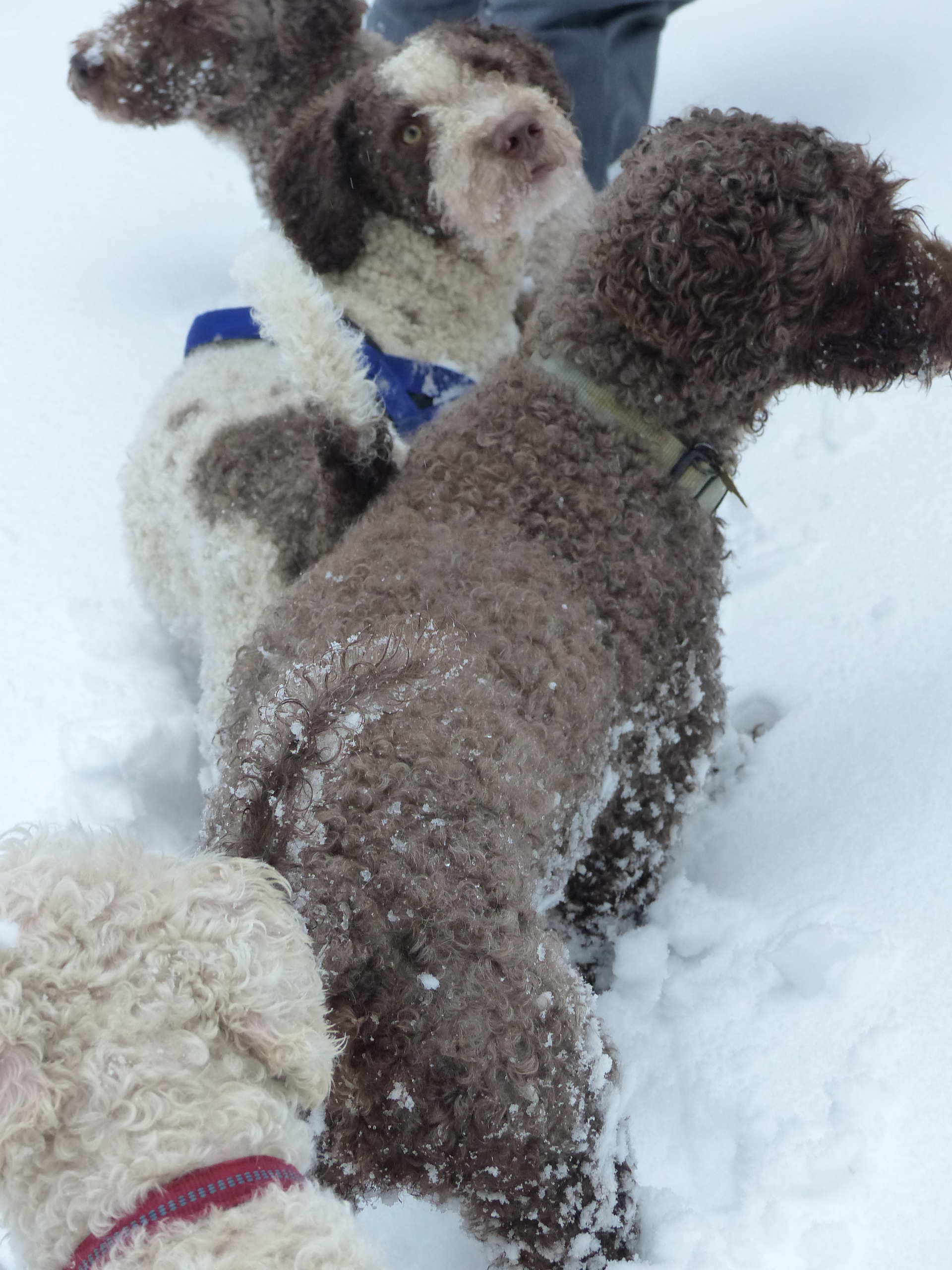 Ein vergnüglicher Nachmittag. Die Hitzköpfe hätten noch ewig weiterspielen können. Die Hunde waren so erledigt, als wir wieder am Auto waren und auch daheim hielt die zufriedene Müdigkeit an. Solche Sonntage könnte es öfter geben.