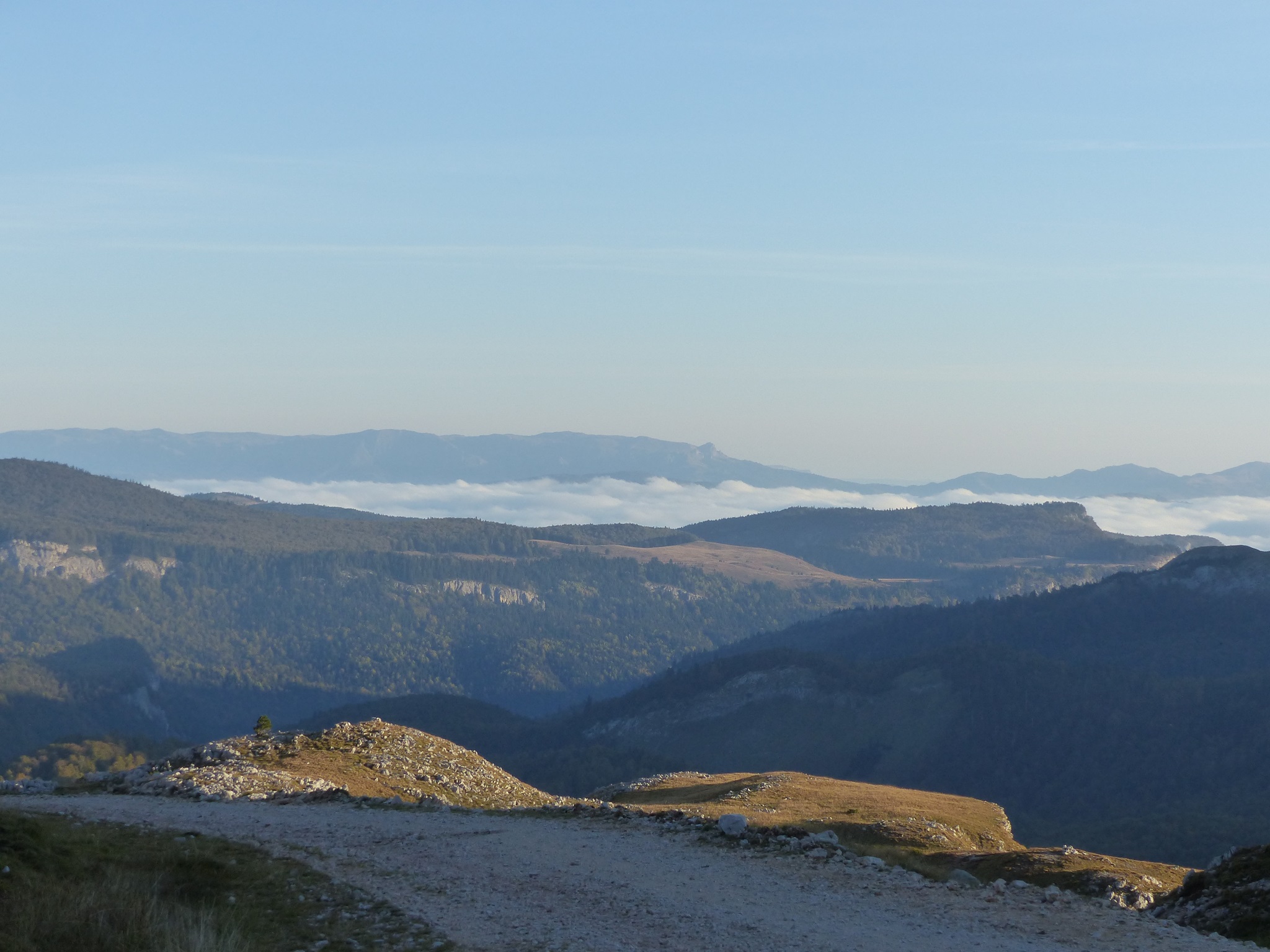 Auf einsamen Pfaden fahren wir eineinhalb Tage die steile und kurvenreiche Schotterpiste auf über 2000 Meter Höhe ansteigend und machen eine Wanderung zum Bregoc, einen der höchsten Gipfel in Bosnien. Es gibt keine Beschreibungen, Wegweiser und keine Wanderhütten. Dafür kommen wir in den Genuss einer wunderschönen Berglandschaft. Die Schafe sind hier zum Schutz vor Bären und Wölfe über Nacht eingepfercht. Ein seltenes beiges Exemplar schlich um unseren Grill :-) Außer einer deutschen Geländewagengruppe sehen wir keine Touristen.