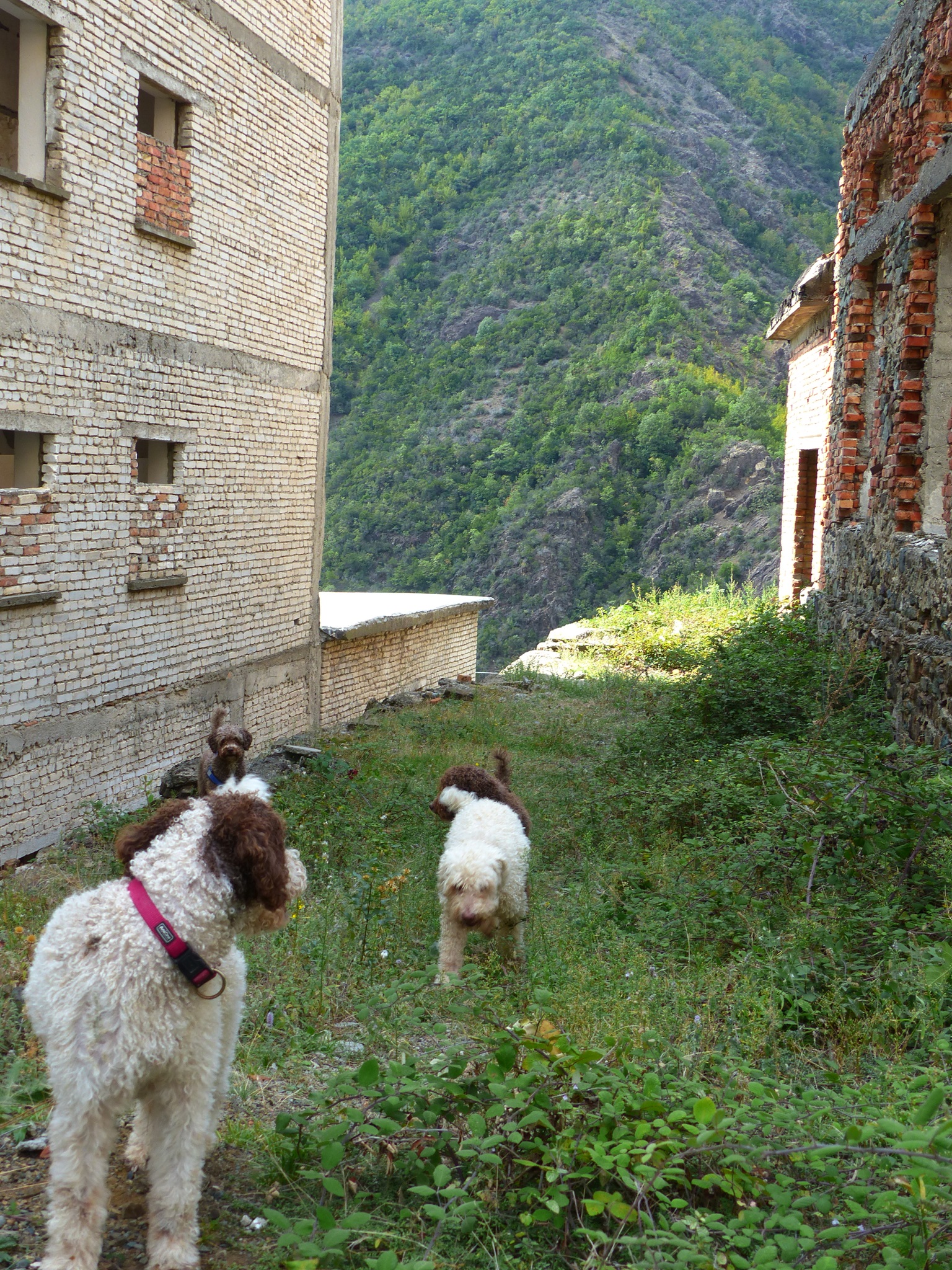 Wir fahren die steile Schotterpiste zum berüchtigten Gefängnis Spac. Das ehemalige Arbeits- und Gefangenenlager, in dem auch politisch Gefangene inhaftiert waren, liegt sehr abgelegen in den Bergen im Norden Albaniens. Bei 40 Grad Hitze im Sommer und bei -10 Grad Kälte im Winter mussten die Angehörigen aus Schikane die Strecke zu Fuß gehen um einen 15-minütigen Besuch zu machen. Die Fahrer der Minen-LKWs hatten die Anweisung niemand mitzunehmen. Die Isolationszellen waren nur 1,20 x 2 Meter. Wenn mehr als zwei Personen darin waren, konnte nur einer auf dem Boden sitzen. Dem Gefängnis fehlten die Türen, selbst Stromkabel konnte jemand gebrauchen :-) Und auch hier oben ziehen heute nur der Wind und wir durch die Überreste des Gefängnisses, das seit etwa 20 Jahren verlassen ist. Weit und breit scheint niemand zu sein. Die Abgeschiedenheit unterstreicht das Unbehagen über die schlimme Vergangenheit dieses Ortes und der langsam einstürzenden Gebäude.