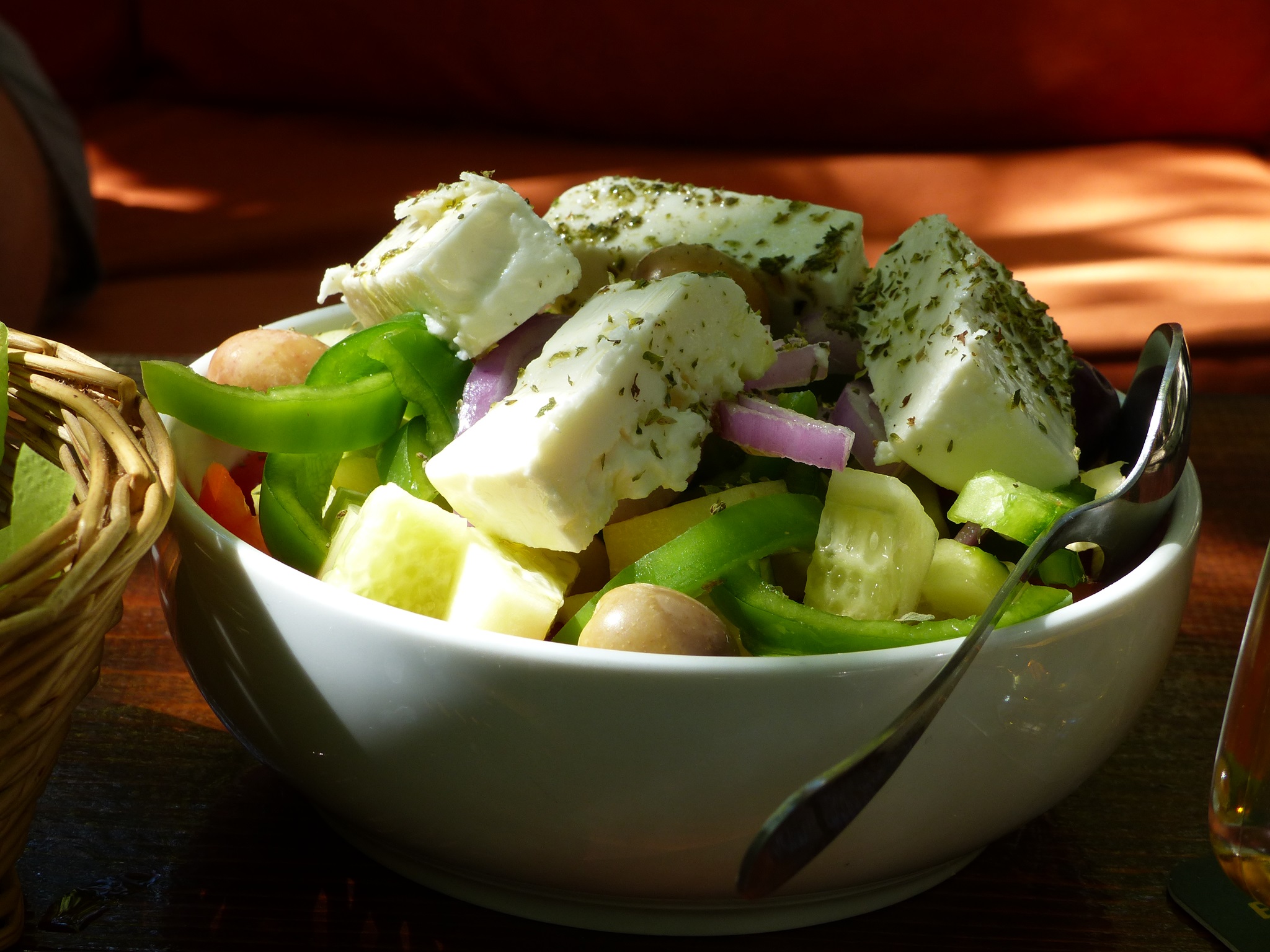 Im Dorf essen wir Hähnchen-Pita, Bauernsalat, Schafsjoghurt mit Honig und Früchten. Eine einfache Holzplattform mit 4-5 einfachen Tischen und Bänken. Die Speisekarte klein aber fein, das Gemüse, der Joghurt, alles aus eigenem Anbau und Bio.