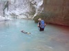 Eine Wanderung führt uns im Canyon durch kniehohes Wasser, weshalb man am besten rutschfeste Wasserschuhe trägt. Teilweise konnte man nur schwimmend weiterkommen. Die Schlucht ist geothermisch mit schwefelhaltigem Quellwasser das überall aus den Felsen rauskommt und Badewannentemperatur hat. Das Schwefelwasser ist auch gut für Hauterkrankungen und Magenproblemen.