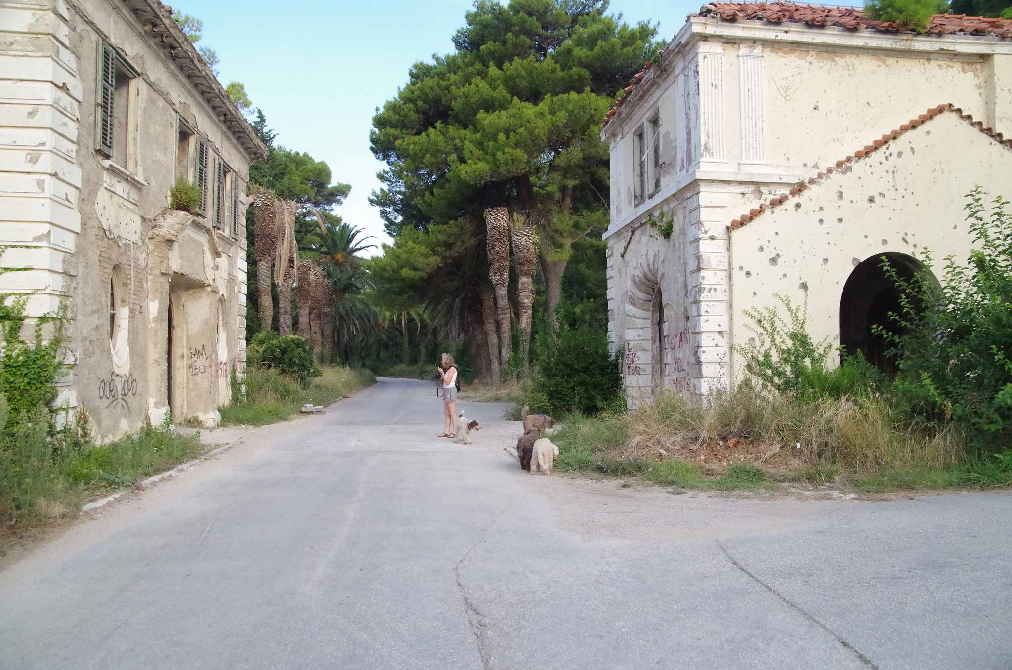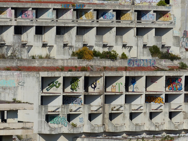 Wir fahren entlang der Küste über Dubrovnik nach Albanien. Dubrovnik hat sich mittlerweile zu einem Touristenzentrum entwickelt. Offiziell leben noch 1.500 Einwohner in der Stadt. Südlich von Dubrovnik liegt eine riesige zerfallene Hotelanlage und einer der schönsten Strände Kroatiens (daher wurden hier auch Hotels gebaut). Man kann nur erahnen, wie luxuriös und schön die Nobelhotels einst waren. Die Führungselite der Jugoslawischen Armee hat dort Urlaub gemacht. Selbst Tito hatte dort eine Villa. Die Hotels besitzen bis zu 600 Zimmer. Das erste Hotel wurde 1919 gebaut. 1984 wurde das letzte eröffnet, bis zum Stillstand im Jahr 1991 im Jugoslawienkrieg, das durch serbische Truppen zerstört wurde. Seither ist es leer. Metall wurde zur Rüstungsindustrie aus den Gebäuden geholt.