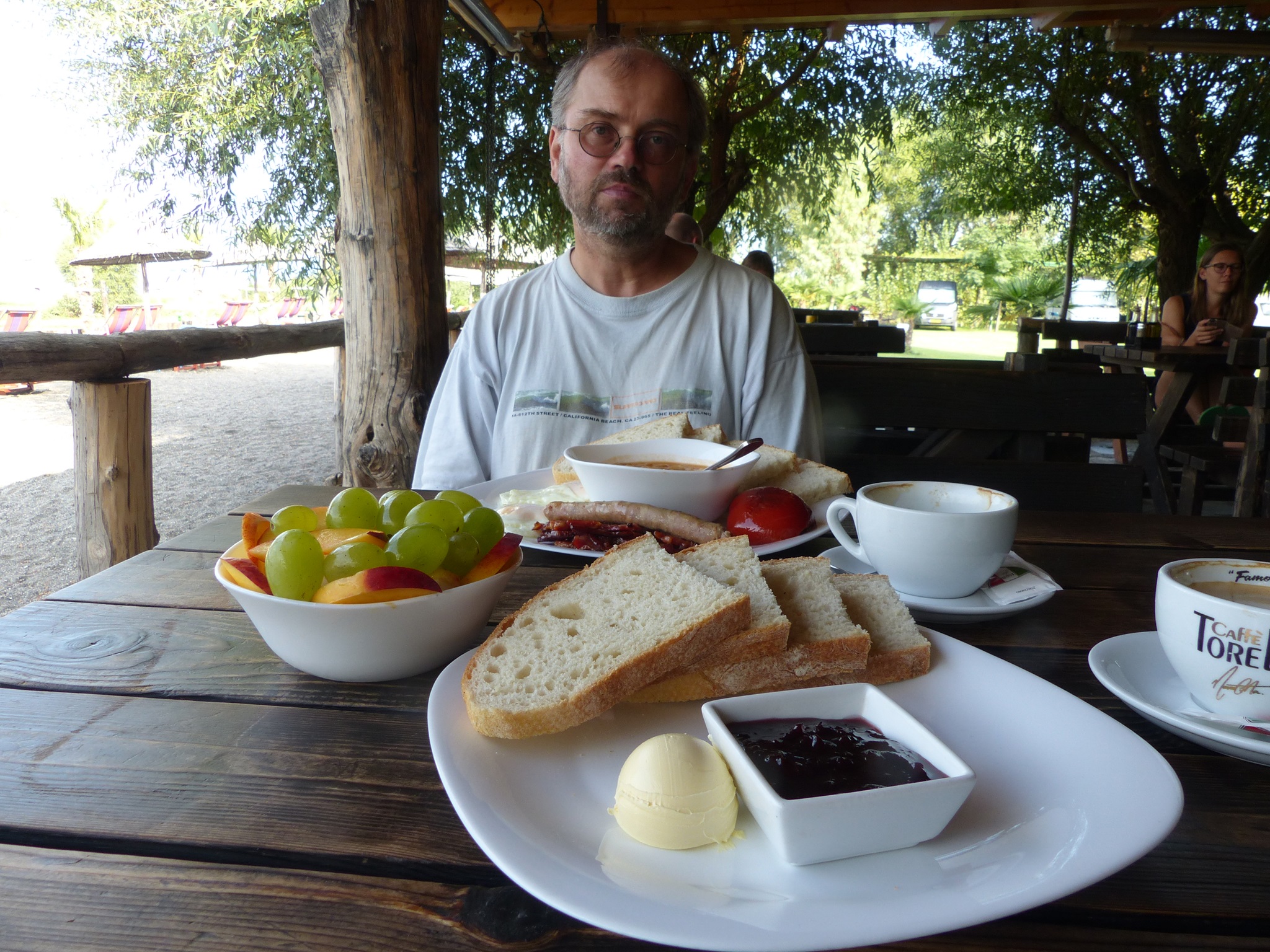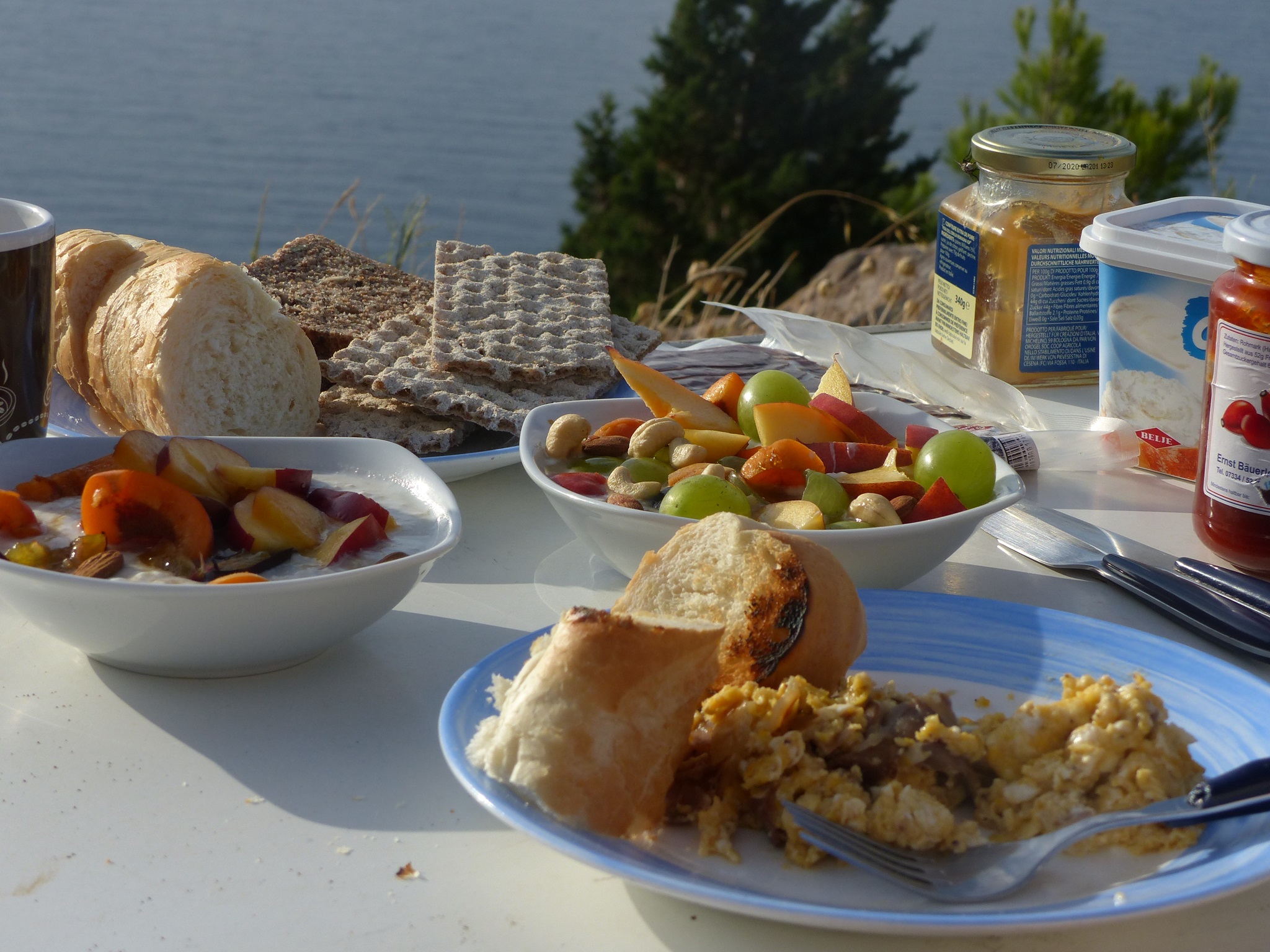 Auf dem Campingplatz Lake Shkodra Resort in Shkoder frühstücken wir ausgiebig und lecker.