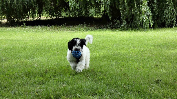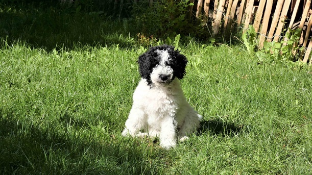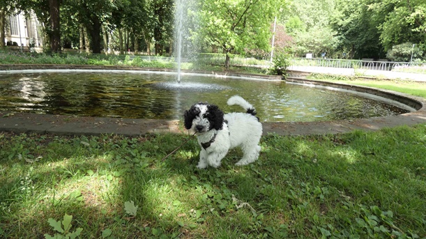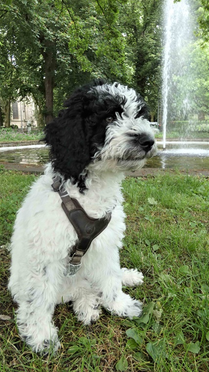 In sich ruhend macht Goya vieles mit einer Selbstverständlichkeit, die uns vergessen lässt, dass sie gerade mal 13 Wochen alt ist. Sie wackelt sich durch unseren Alltag, läuft vorbildlich mit und ohne Leine.