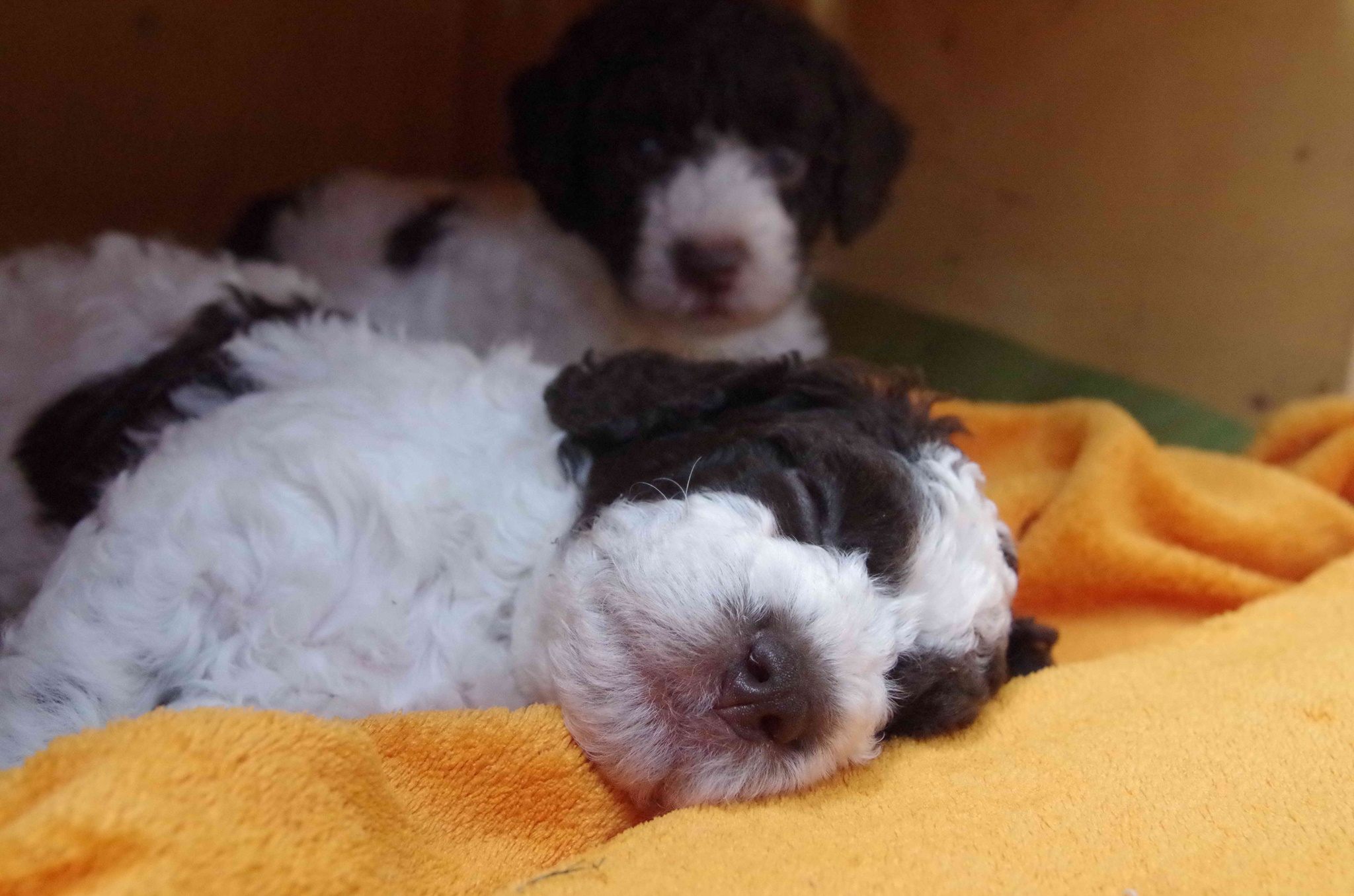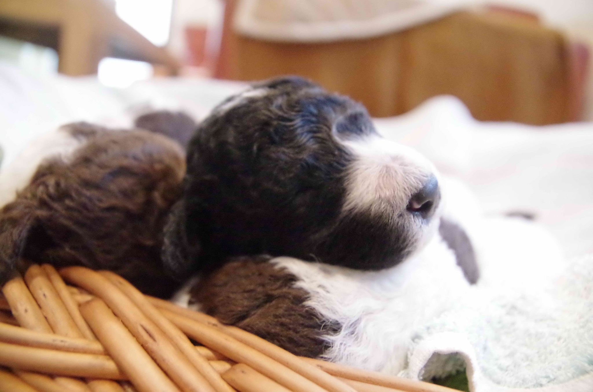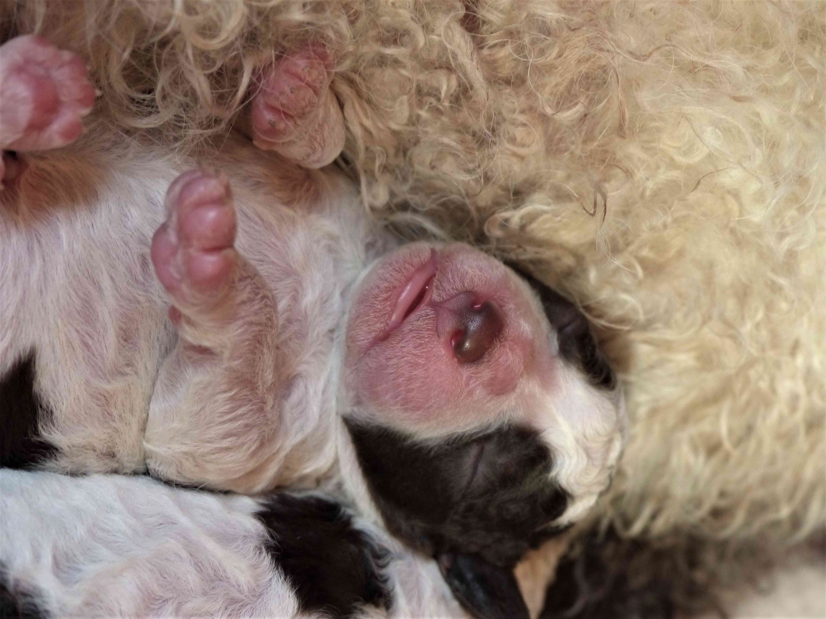 Die Welpen sind nun einen Tag alt und haben ihre Geburtsgewichte schon ordentlich nach oben getrieben.