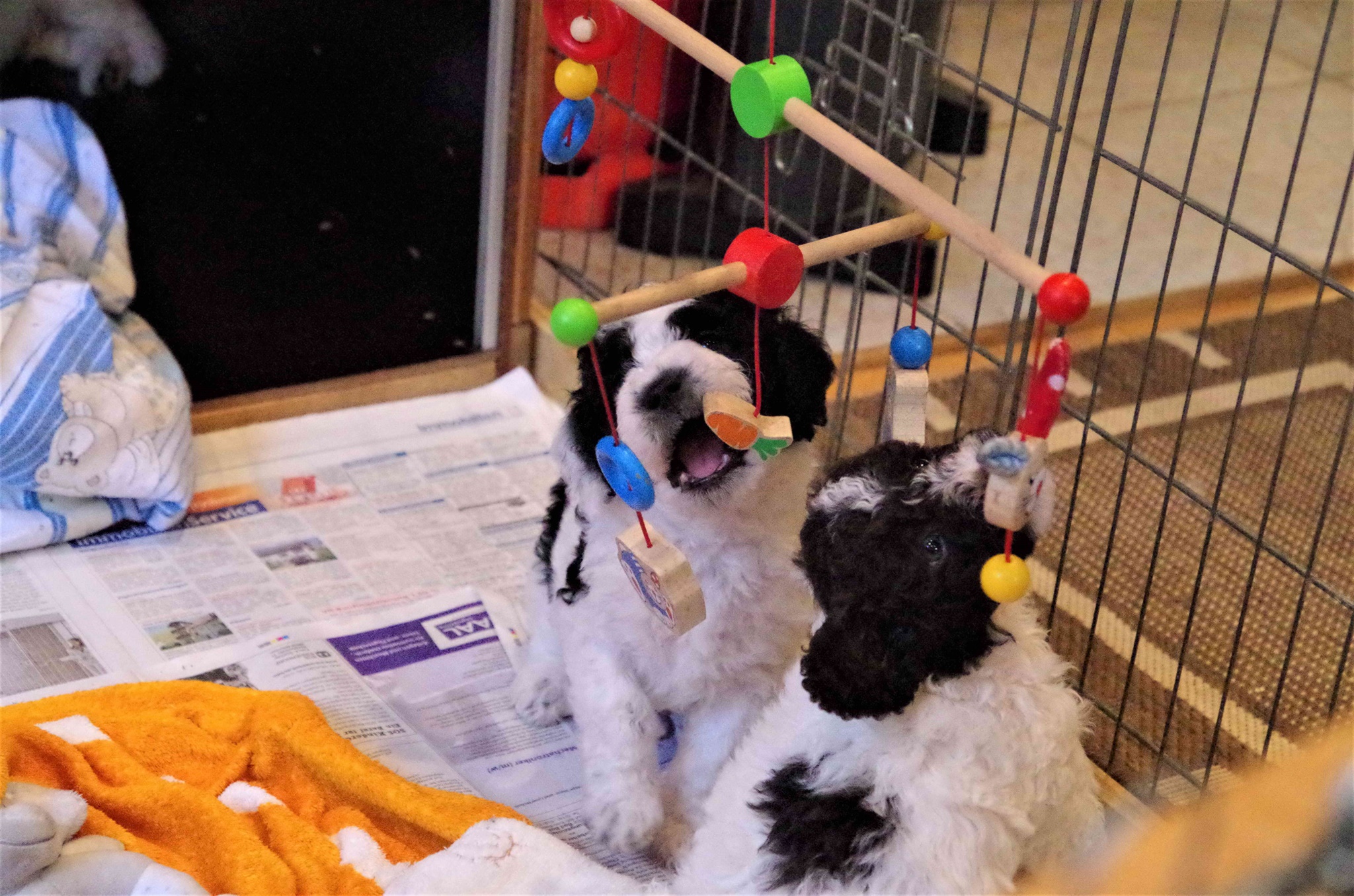 Alle haben nun die Augen offen, wurschteln sich durch die Wurfkiste und haben schon das volle Repertoire an Lautäußerungen intus - wir ahnen, die ruhigen Zeiten sind vorbei.