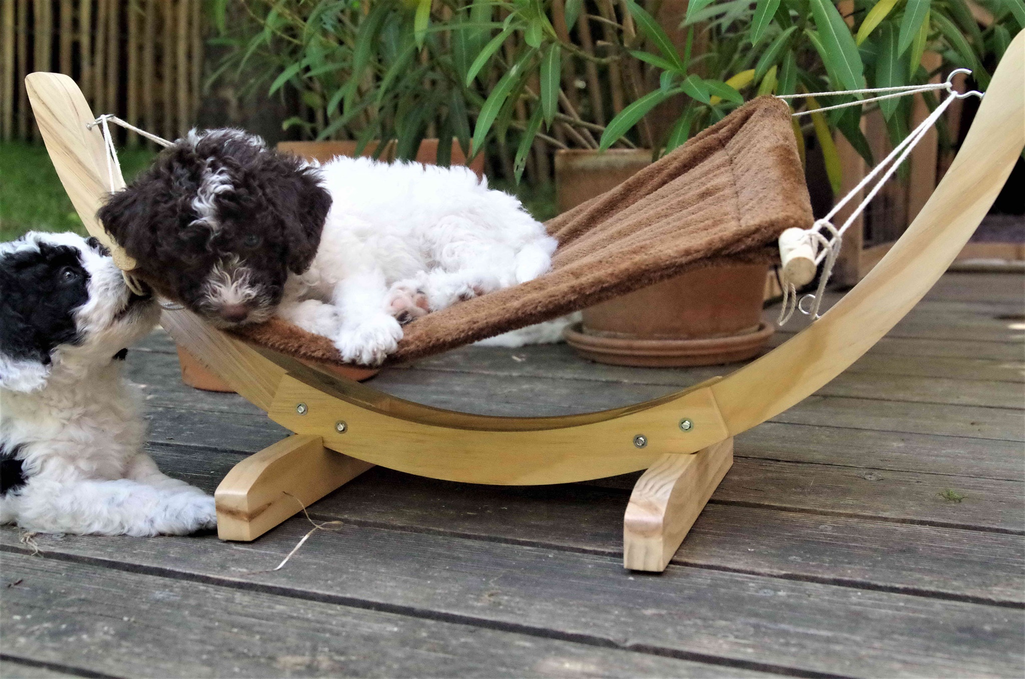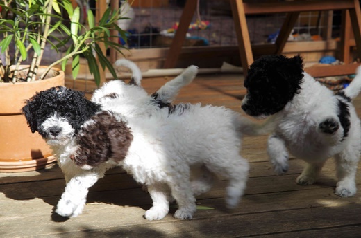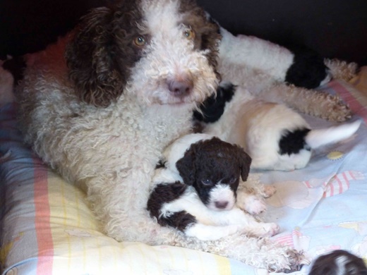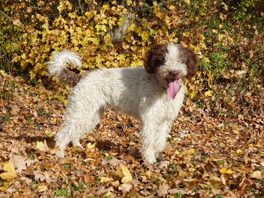 Falco mag alle Menschen und Hunde, ist immer nett. Mit 3 Jahren ist er ein muskulöses Powerpack auf 4 großen Pfoten, mit einer Energie ausgestattet, die einen Staunen lässt. Emi fand ihn sehr sympathisch - ein kleiner Flirt, sicherlich auf Spanisch. Er ist Gonio- und PRA-frei (aktuell muss besonders auf Vererber von Gonio geachtet werden) und NAD-frei aufgrund freier Eltern. Sein Vater ist Emanuell Wavelet, seine Mutter ist Canina Aqua Bibi.