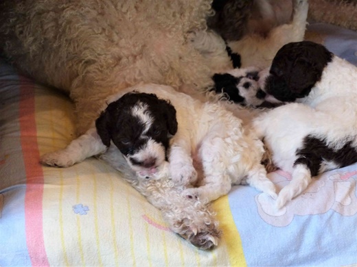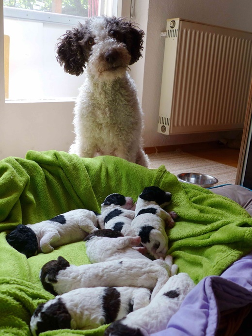 Emilia brachte in der Nacht von Montag auf Dienstag ihren ersten Wurf zur Welt und ist stolze Mutter von 7 Kindern. 4 Jungs, 3 Mädels - 3 Rüden in weiß-schwarz, der Rest in weiß-braun, die zwischen 220 und 310 Gramm wiegen und mit ihrem Charme sicherlich die neuen Herrchen und Frauchen fest in der Pfote haben werden.