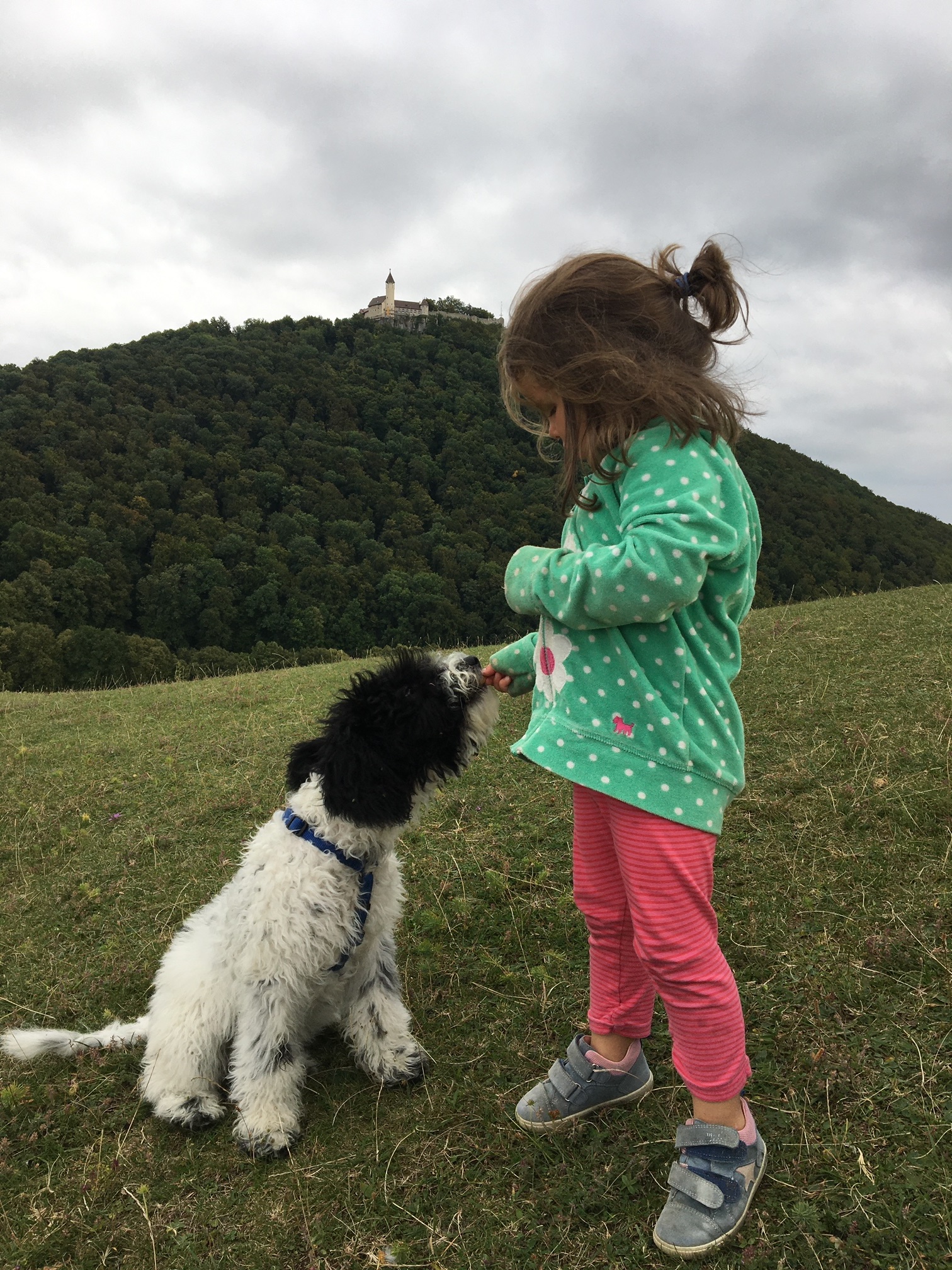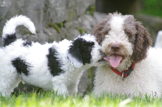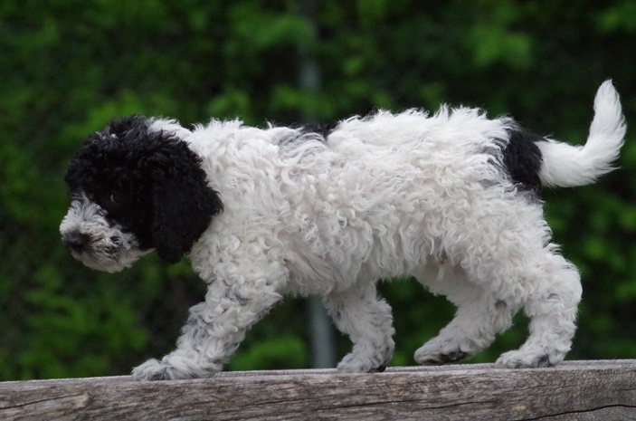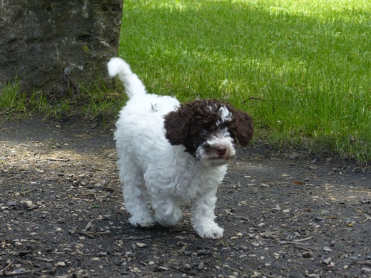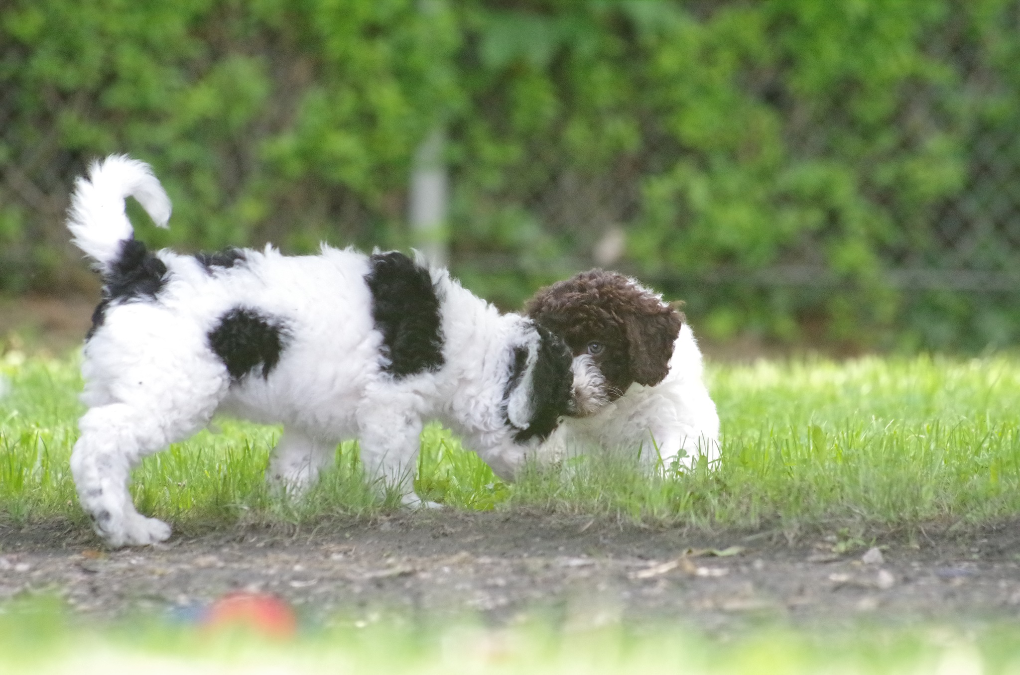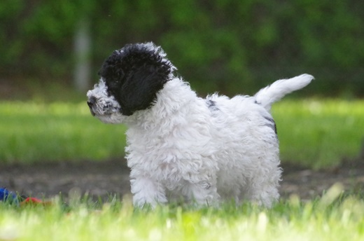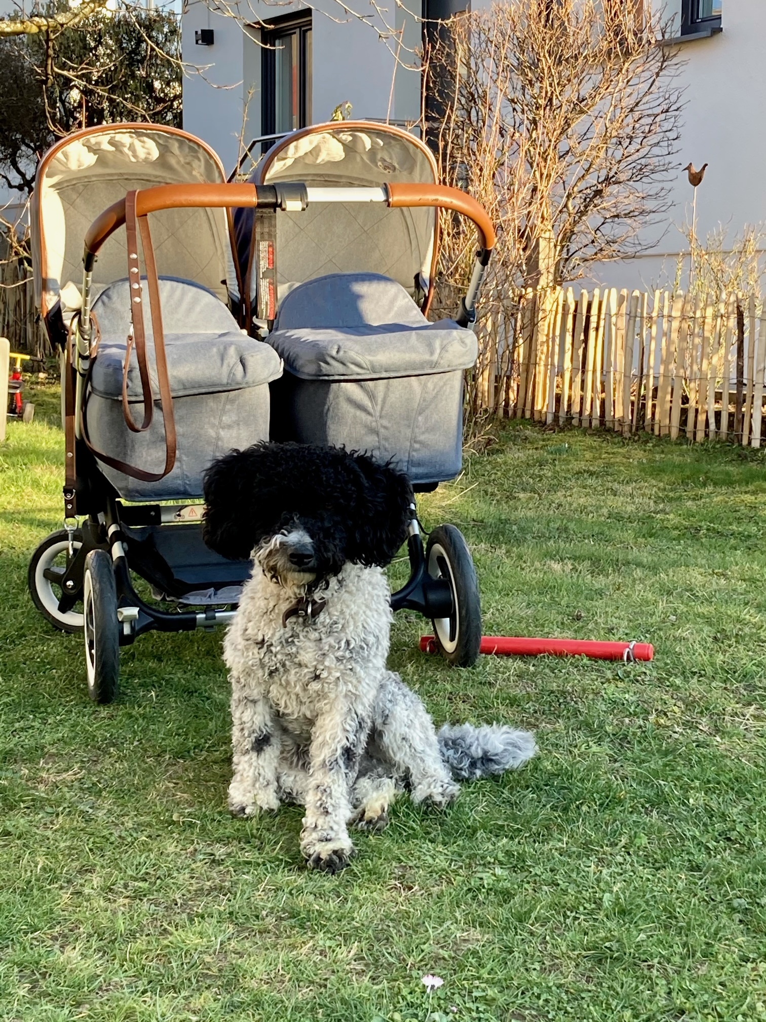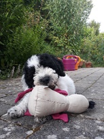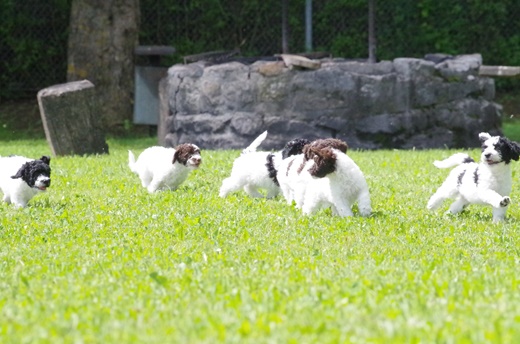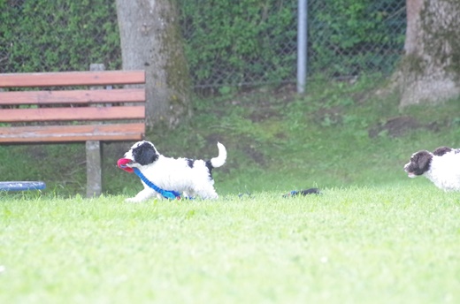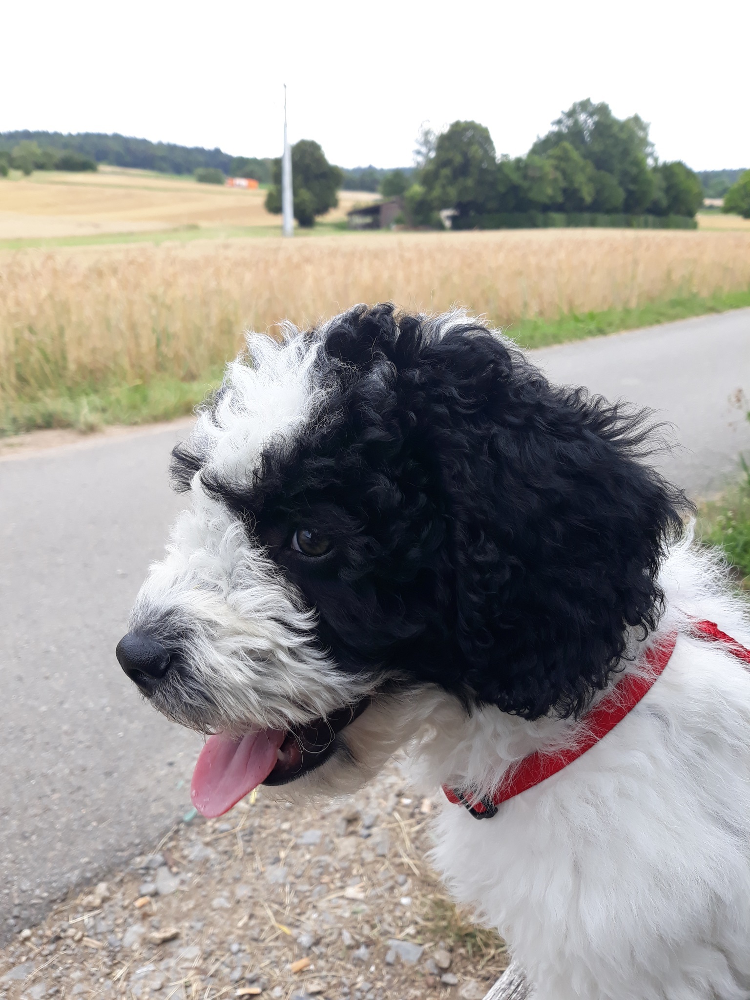 Der F-Wurf war ein sehr angenehmer, liebenswerter und fröhlicher Wurf und in allem unkompliziert. Umso mehr hat uns die nahezu fehlerfreie Wurfabnahme gefreut. Ein minimaler Knick am Ende der Rute. Die Gebisse passen, breiter Fang und auch die Buben haben „Vollausstattung“. Alles dran, alles toll, alles bestens. Die Köpfe schön kräftig! Ja, Köpfe, das können wir ;-)