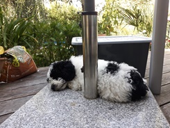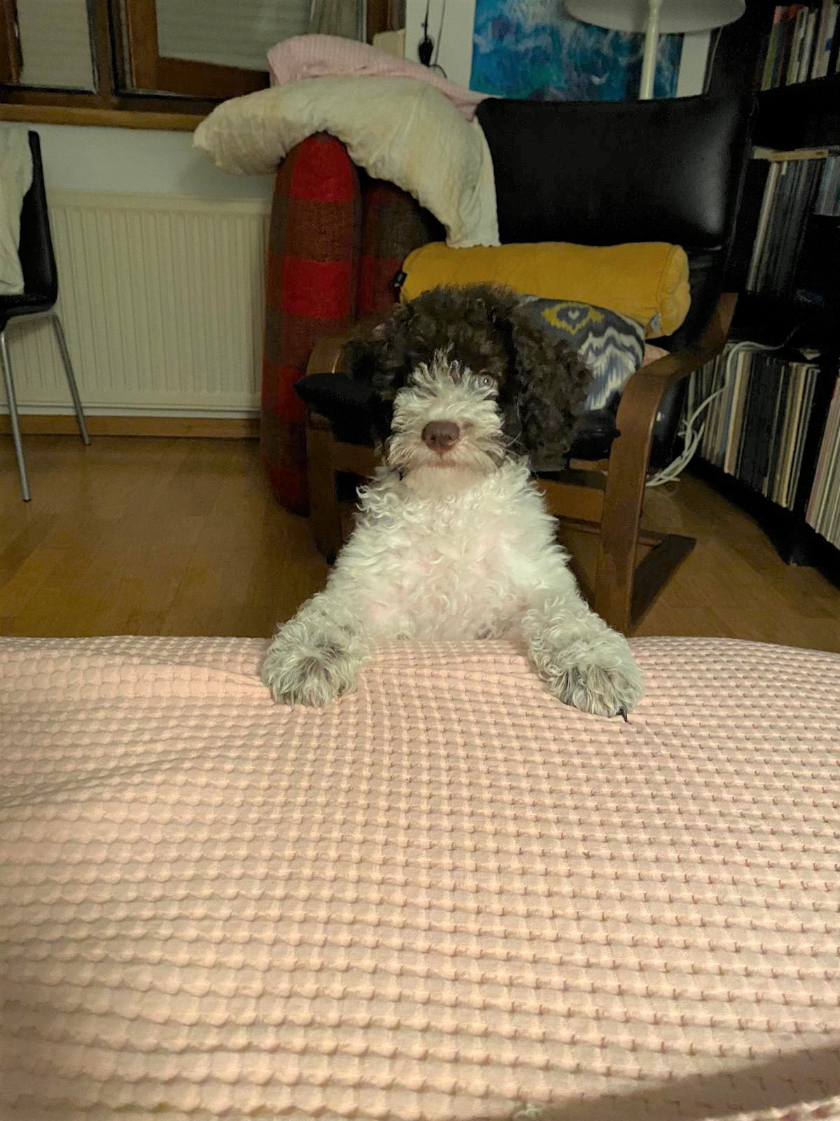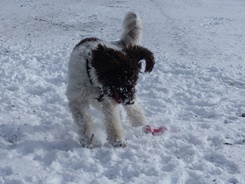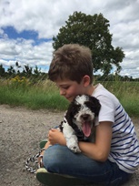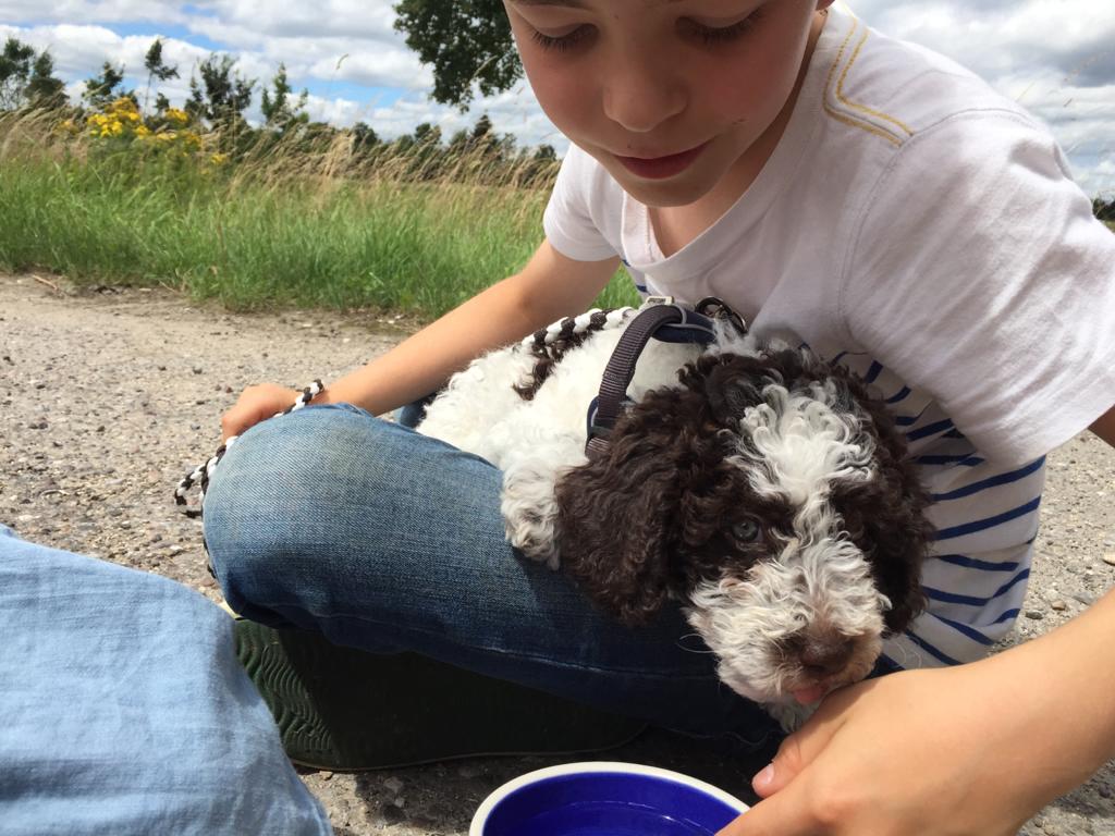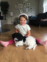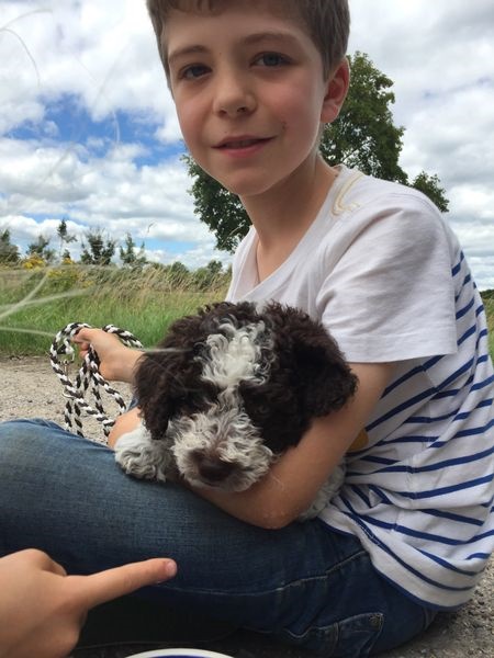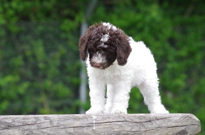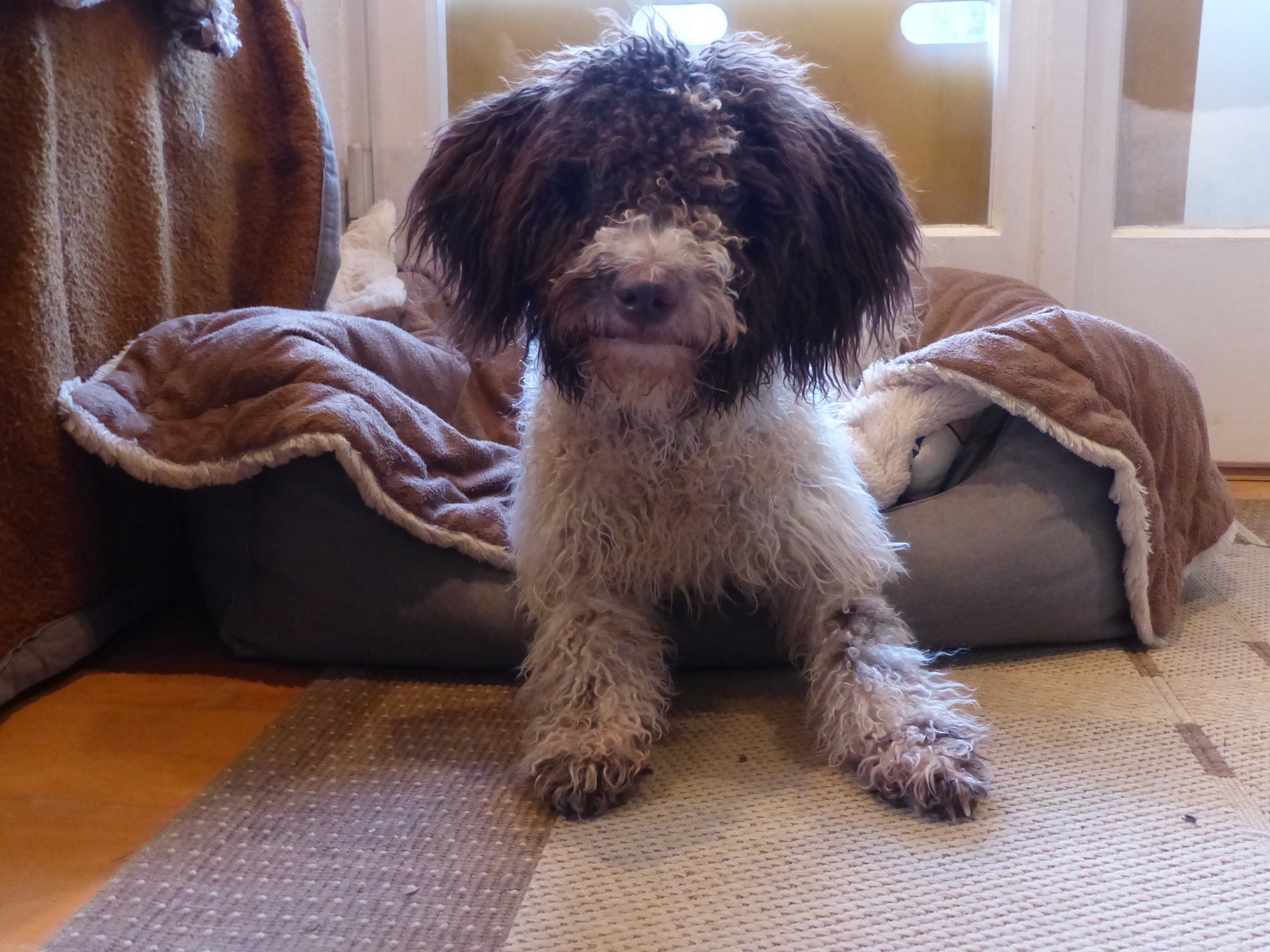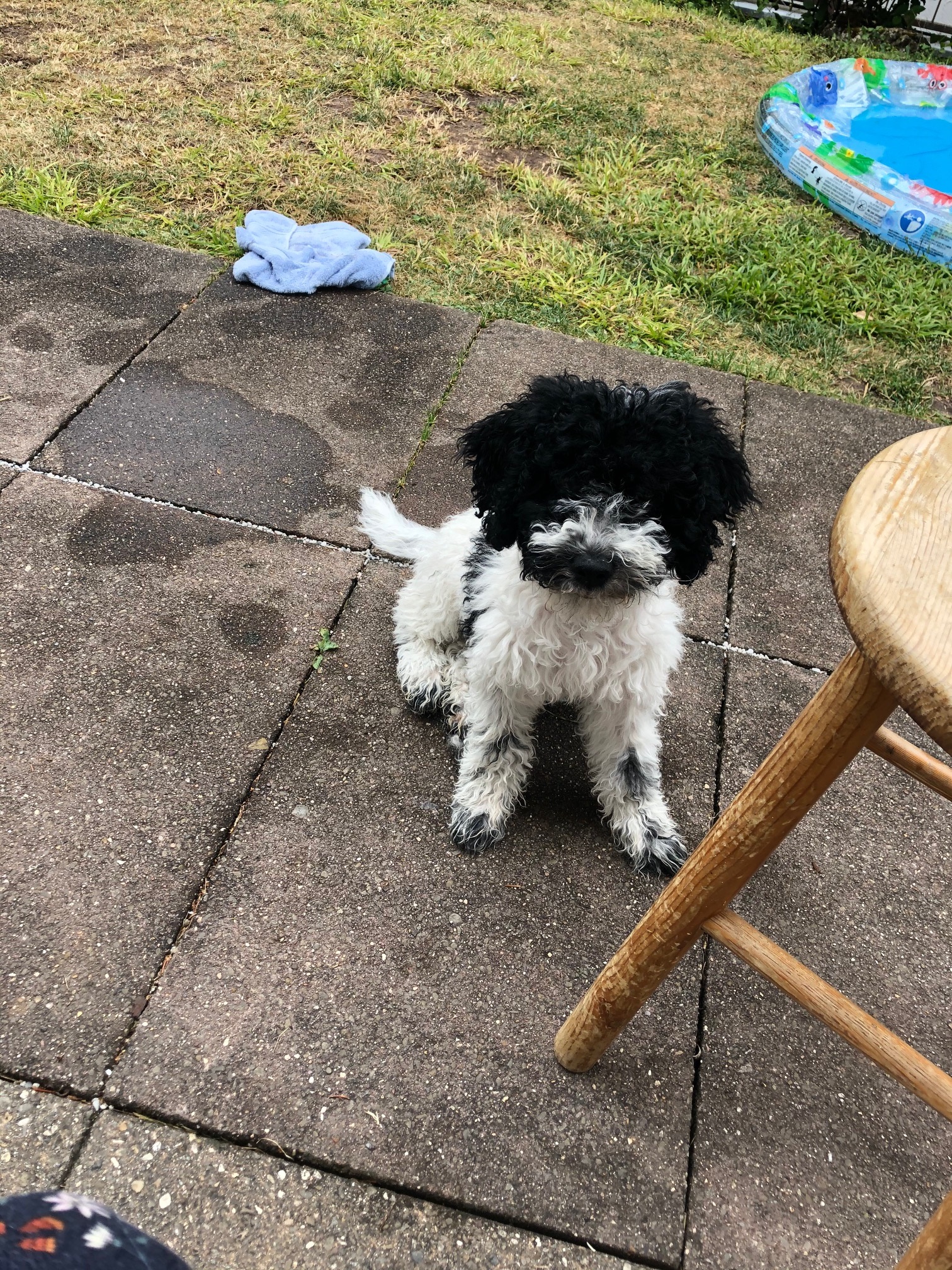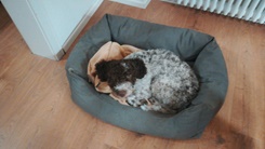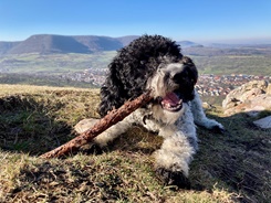 Der F-Wurf war ein sehr angenehmer, liebenswerter und fröhlicher Wurf und in allem unkompliziert. Umso mehr hat uns die nahezu fehlerfreie Wurfabnahme gefreut. Ein minimaler Knick am Ende der Rute. Die Gebisse passen, breiter Fang und auch die Buben haben „Vollausstattung“. Alles dran, alles toll, alles bestens. Die Köpfe schön kräftig! Ja, Köpfe, das können wir ;-)