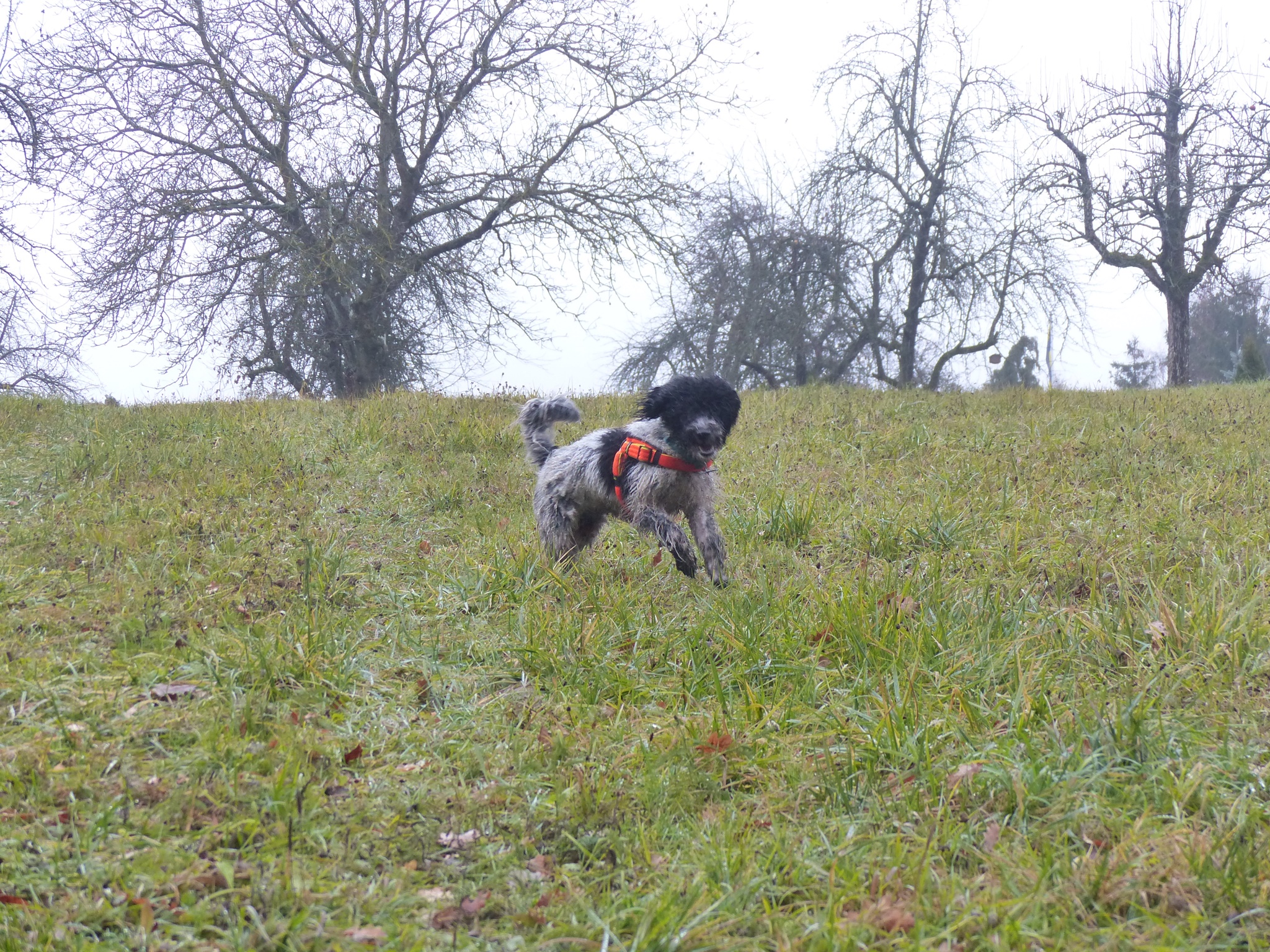 Nachdem der Schneefall für den Sonntag ausgesetzt hatte, starteten wir früh am Morgen mit Kurs auf Rutesheim, um dort die zwei Jungs zu treffen und gemeinsam eine Runde zu laufen. Die Hunde hatten viel Spaß und haben das Toben genossen.