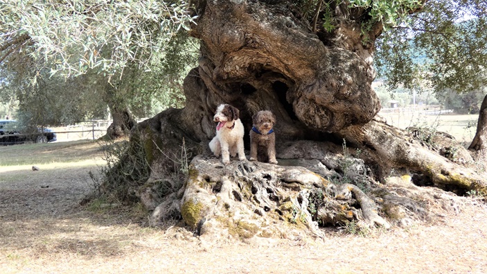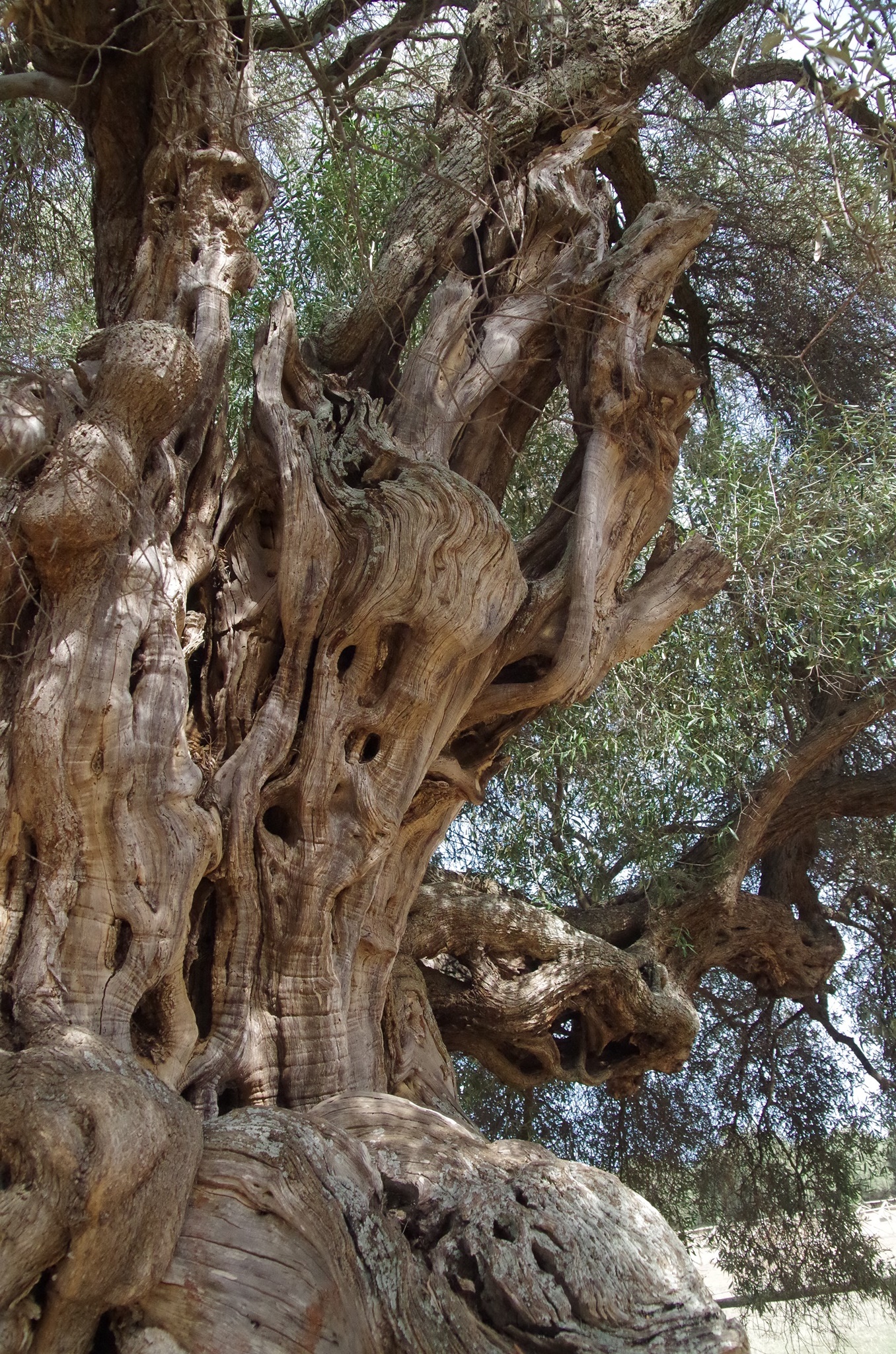 Uralte verwilderte Olivenbäume die über tausend Jahre alt sind, stehen über weite Strecken entlang des Weges.