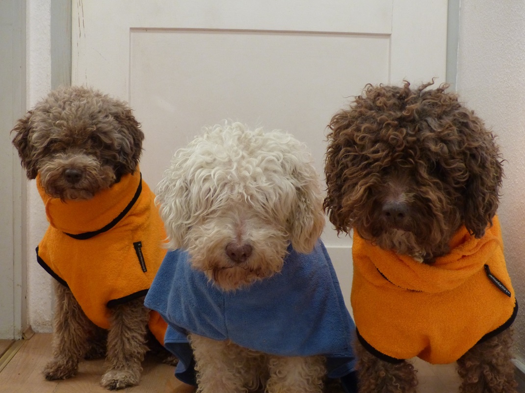 Viel war nicht los, gekriegt haben wir auch nichts, was uns vom Hocker gehauen hätte. Statt einem leckeren Häppchen haben wir nun Bademäntel bekommen, damit wir nicht so schnell frieren, wenn wir im Auto mal warten müssen. Die Anwesenden haben sich weggeschmissen, als wir im Trio damit einliefen. Natürlich hat jeder ein anderes Modell. Ich trage die Farbe Blau und habe unser „FDN-Logo" an der Seite. Toller Spaß - wir hassen Mäntel. Wie sieht das denn aus? Was sollen die Leute denken??? Zum Glück gab es dann gestern und heute Ente. Jetzt warten wir darauf, was der Tag noch bringt. Und am Wochenende haben wir Programm. Ansonsten gibt es wenig Neuigkeiten. Trainingstechnisch hat die Winterpause begonnen und wir machen es uns gemütlich.