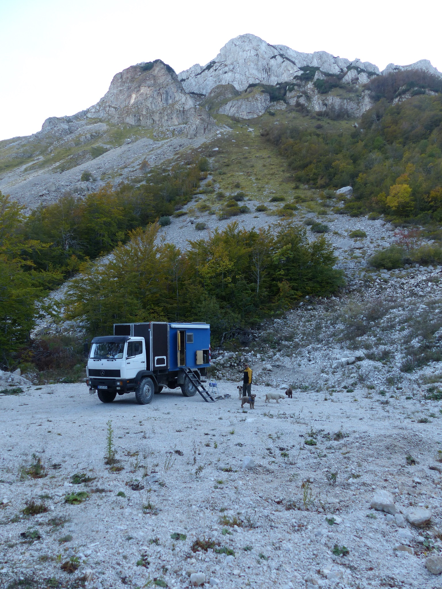 Das Wetter ist wunderbar sommerlich, mehr als 30°C und wolkenlos und es fühlt sich nach Urlaub an. Unsere Reise führt uns über Kroatien, Bosnien und Albanien nach Griechenland. Mit unserem selbst ausgebauten Mercedes 1317 haben wir nun etwas mehr Komfort und unsere Hunde haben auch etwas mehr Platz. Abends wird gekuschelt, Bonnie belagert die Couch und quetscht sich in jede noch so winzige Ritze, „Hauptsache, wir sind alle zusammen“. Wer uns kennt, der weiß, dass unsere Perras - wann immer und wo es immer geht und das ist fast immer der Fall - immer dabei sind und zwar „mittendrin statt nur dabei“.
