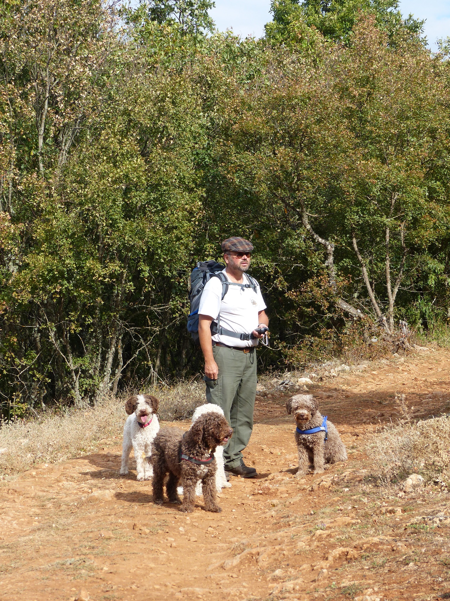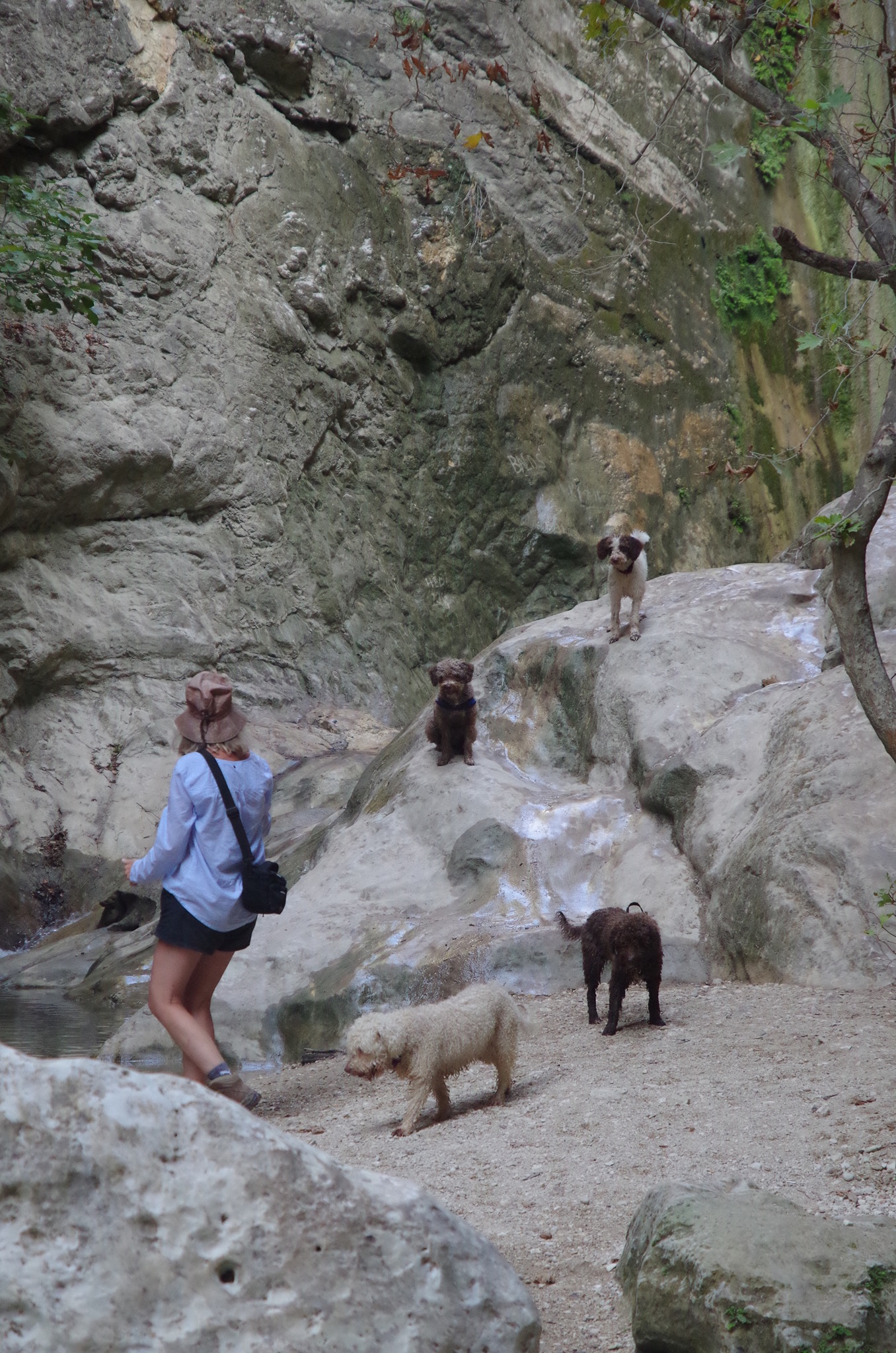Am nächsten Tag ziehen wir die Wanderschuhe an und machen eine Wanderung ins wilde Pindos-Gebirge. Den Hunden juckt es schon in den Pfoten. Die Eichen weichen riesigen uralten Laubbäumen. Die Hunde laufen begeistert und spielen am Wasser.