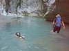 Eine Wanderung führt uns im Canyon durch kniehohes Wasser, weshalb man am besten rutschfeste Wasserschuhe trägt. Teilweise konnte man nur schwimmend weiterkommen. Die Schlucht ist geothermisch mit schwefelhaltigem Quellwasser das überall aus den Felsen rauskommt und Badewannentemperatur hat. Das Schwefelwasser ist auch gut für Hauterkrankungen und Magenproblemen.