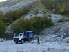 Entlang der Autobahn stehen hohe Zäune, oben abgeknickt und mit Stacheldraht, um zu verhindern, dass die Bären auf die Autobahn kommen. Wir fahren vorbei an verlassenen und verfallenen Dörfern, Bären und Wölfe können sich hier ungestört ausbreiten. Zum Schutz der Tiere haben die Ziegenhirten sechs bis acht Herdenschutzhunde für ihre nur sehr kleinen Herden dabei.